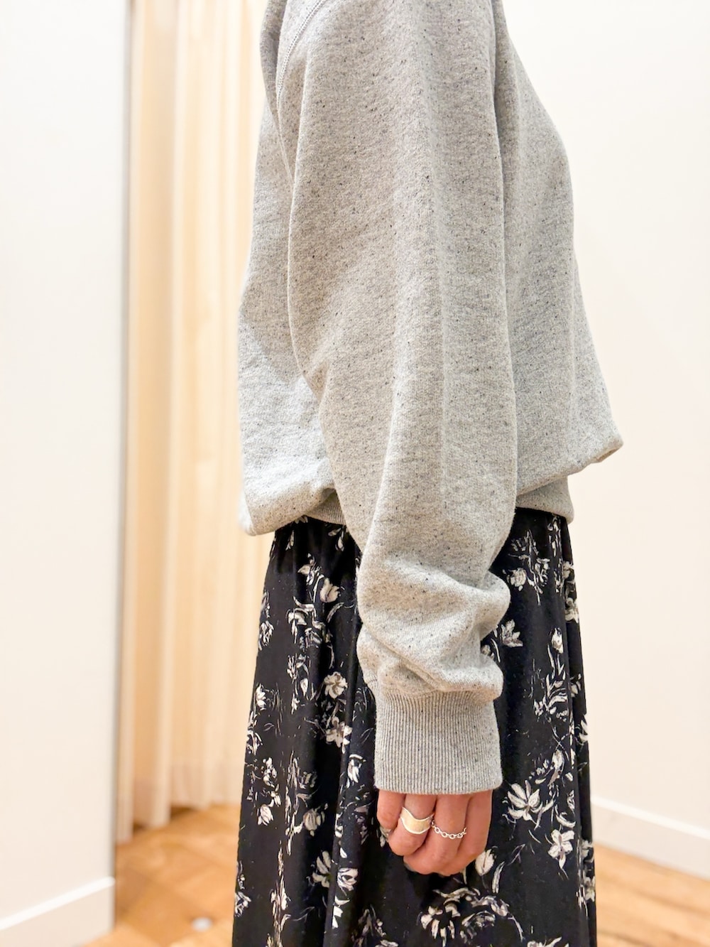 落ち感のある素材で広がりすぎずスッキリと着用できます◎