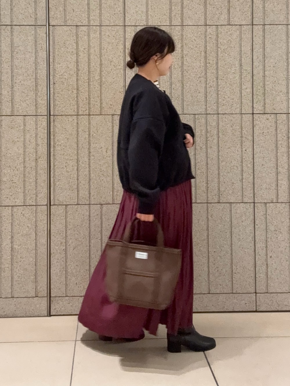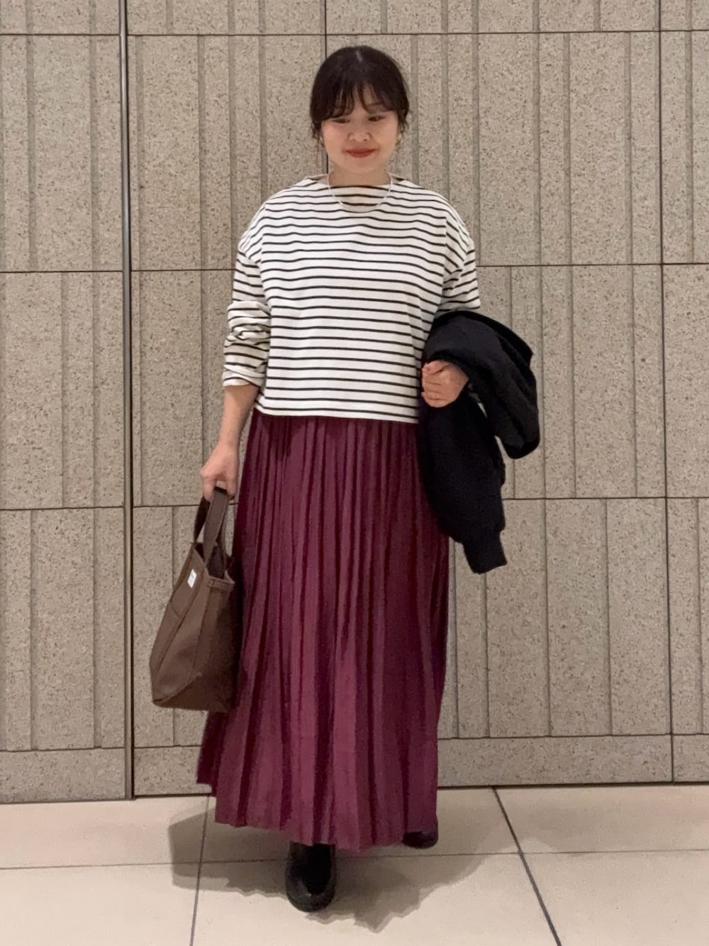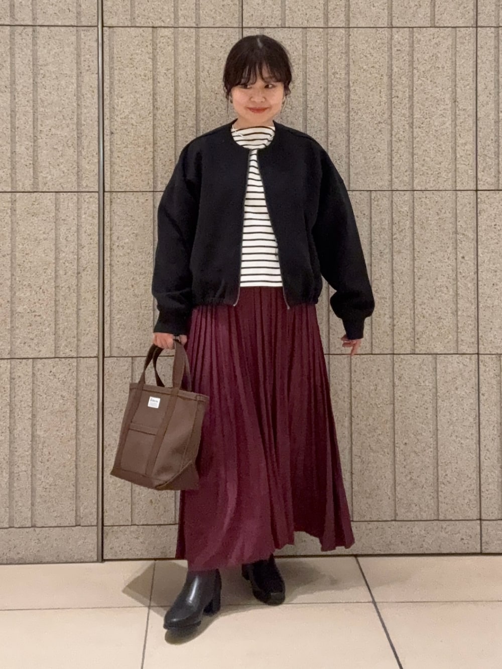 プリーツスカートはボルドーで秋カラーをセレクトしてみました。