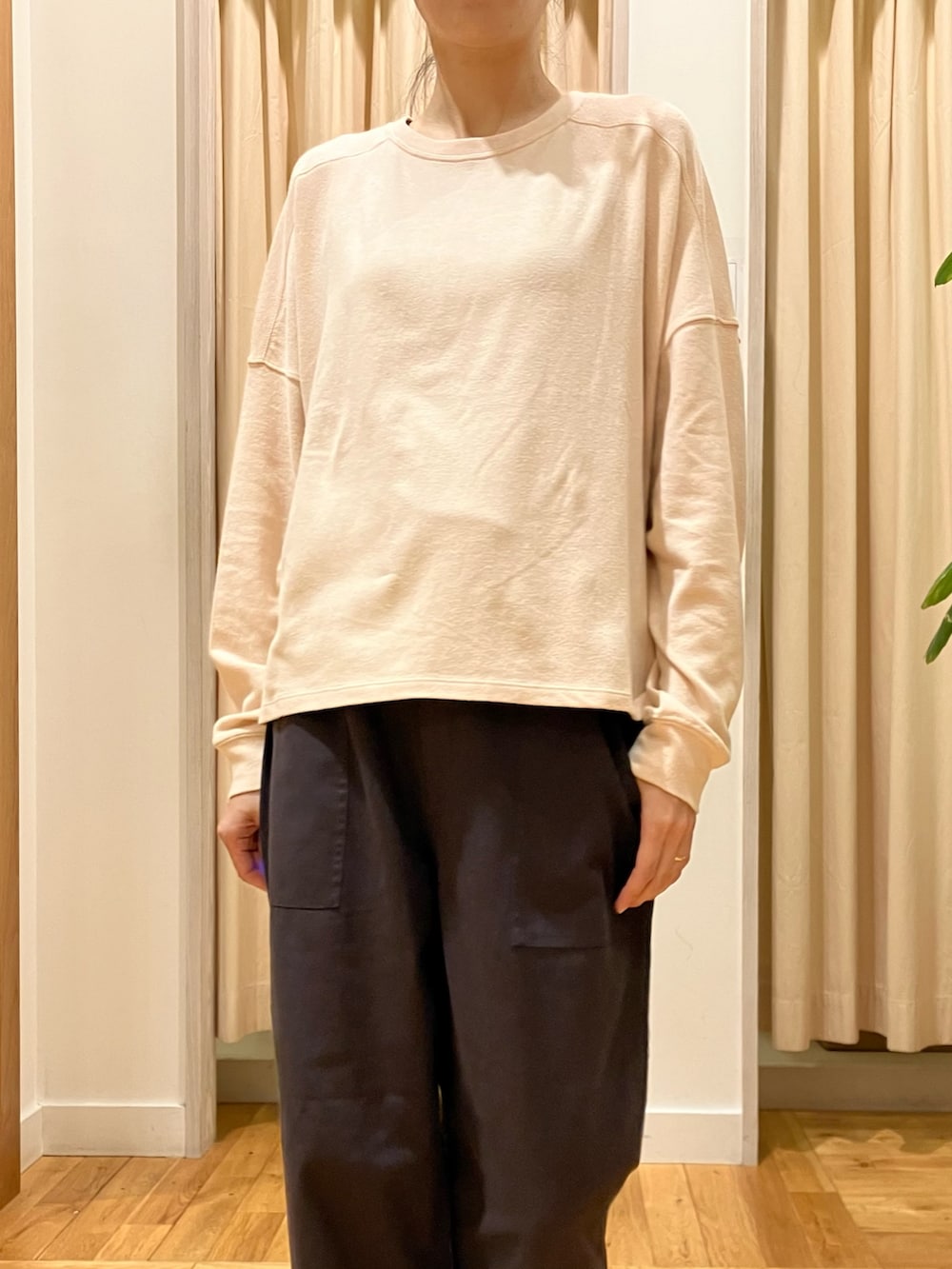 トップスはスウェットとTシャツの間のような程よい厚さで、やみつきになる柔らかい着心地です!