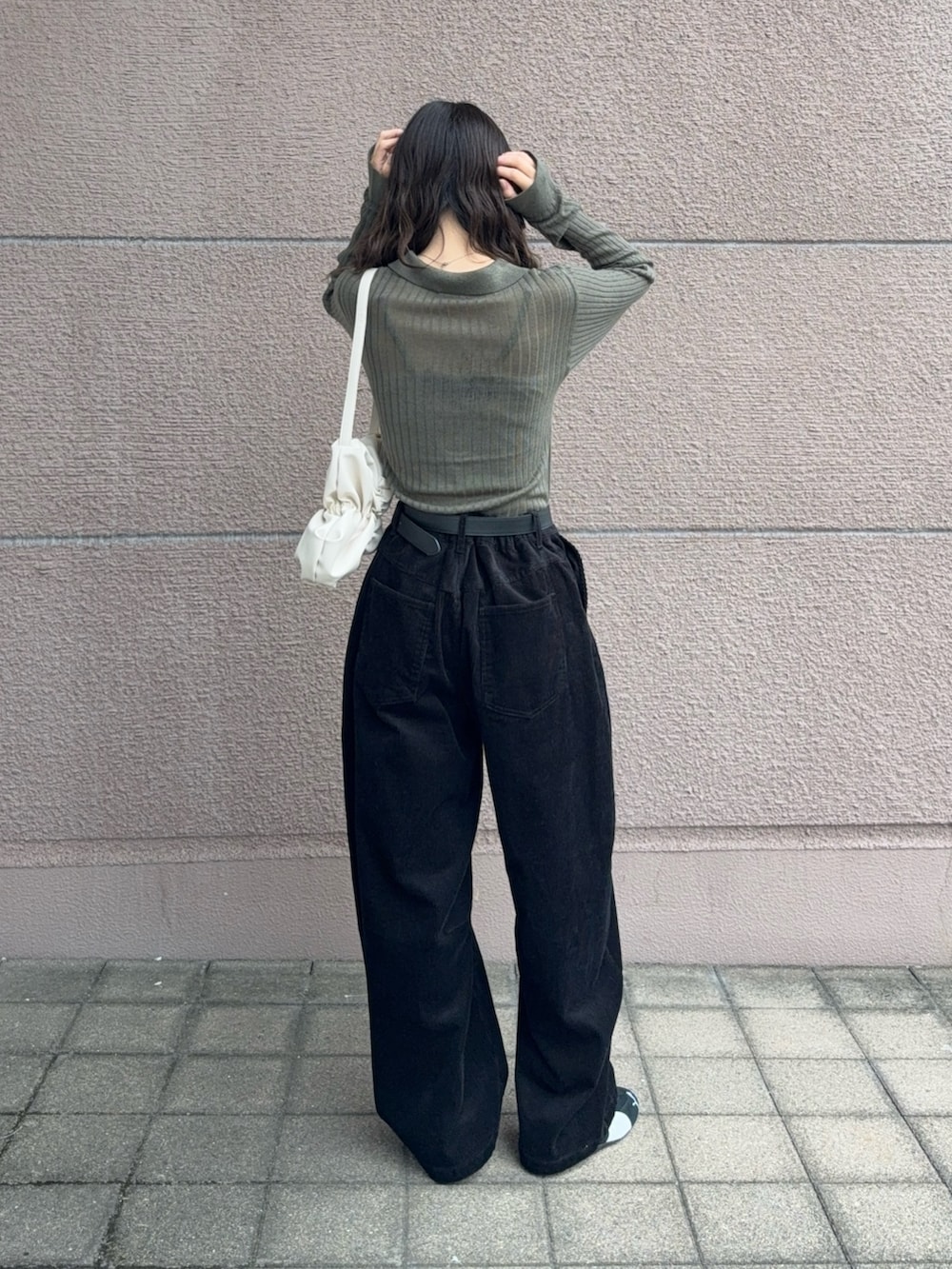 ボトムスはバレルパンツでシルエットが可愛いアイテムにになっています!コーデュロイパンツなのでこれから履いていただきやすいアイテムだと思います!