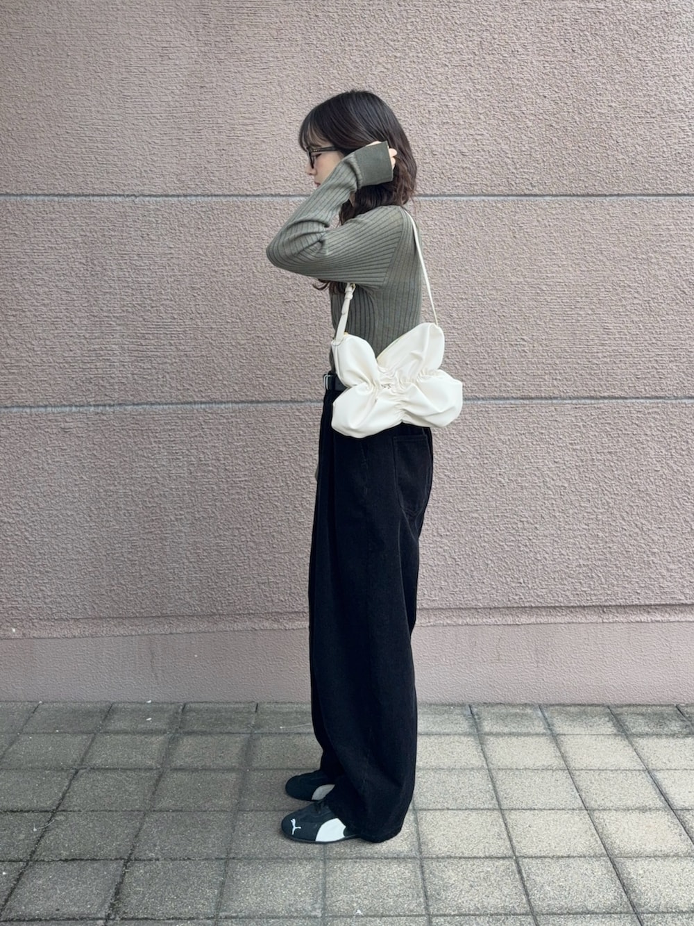 トップスはシアーニットでシルエットと色味がとても可愛いアイテムになっています!ポロニットで秋冬感があって今の季節にピッタリなアイテムです!