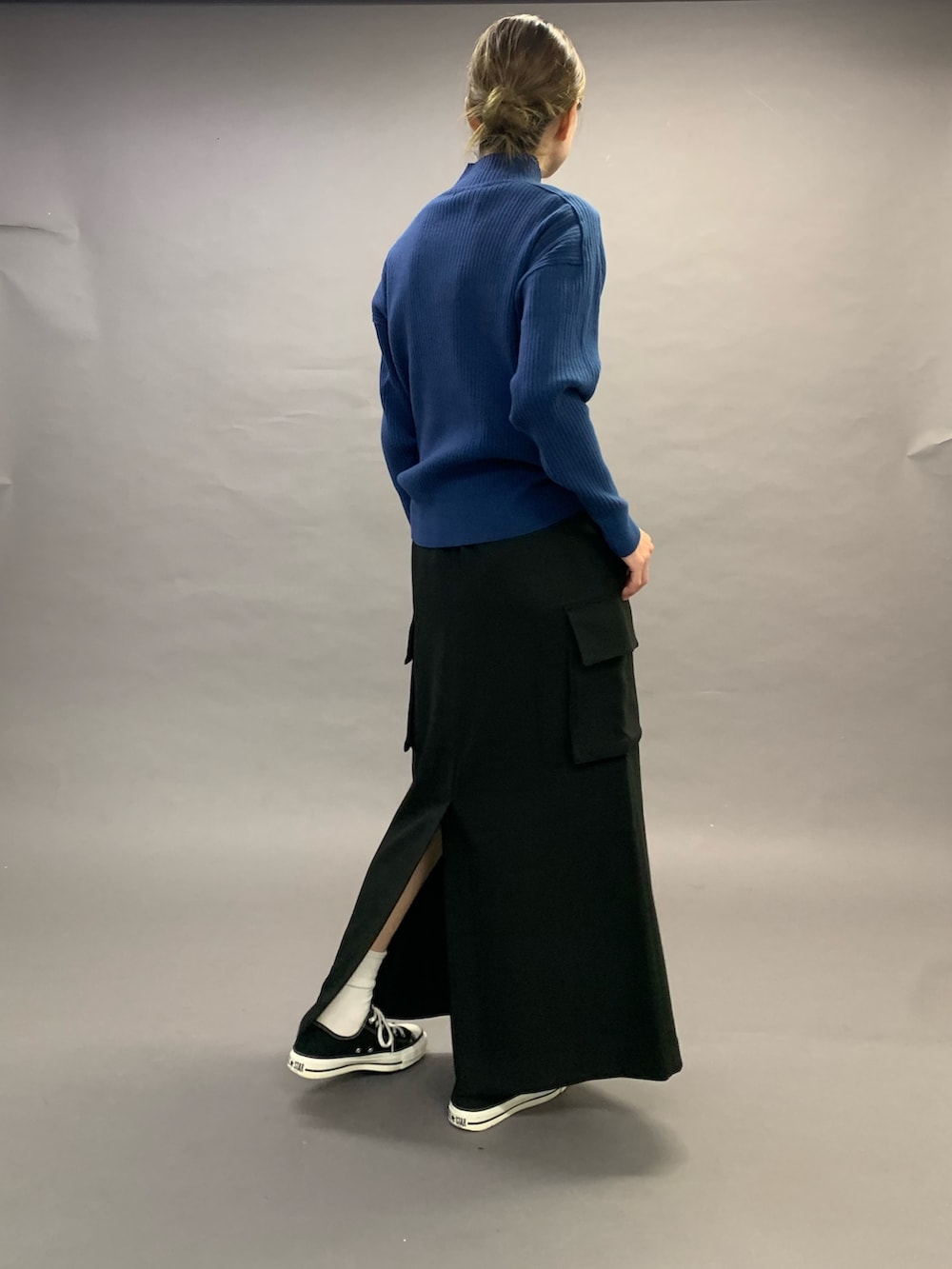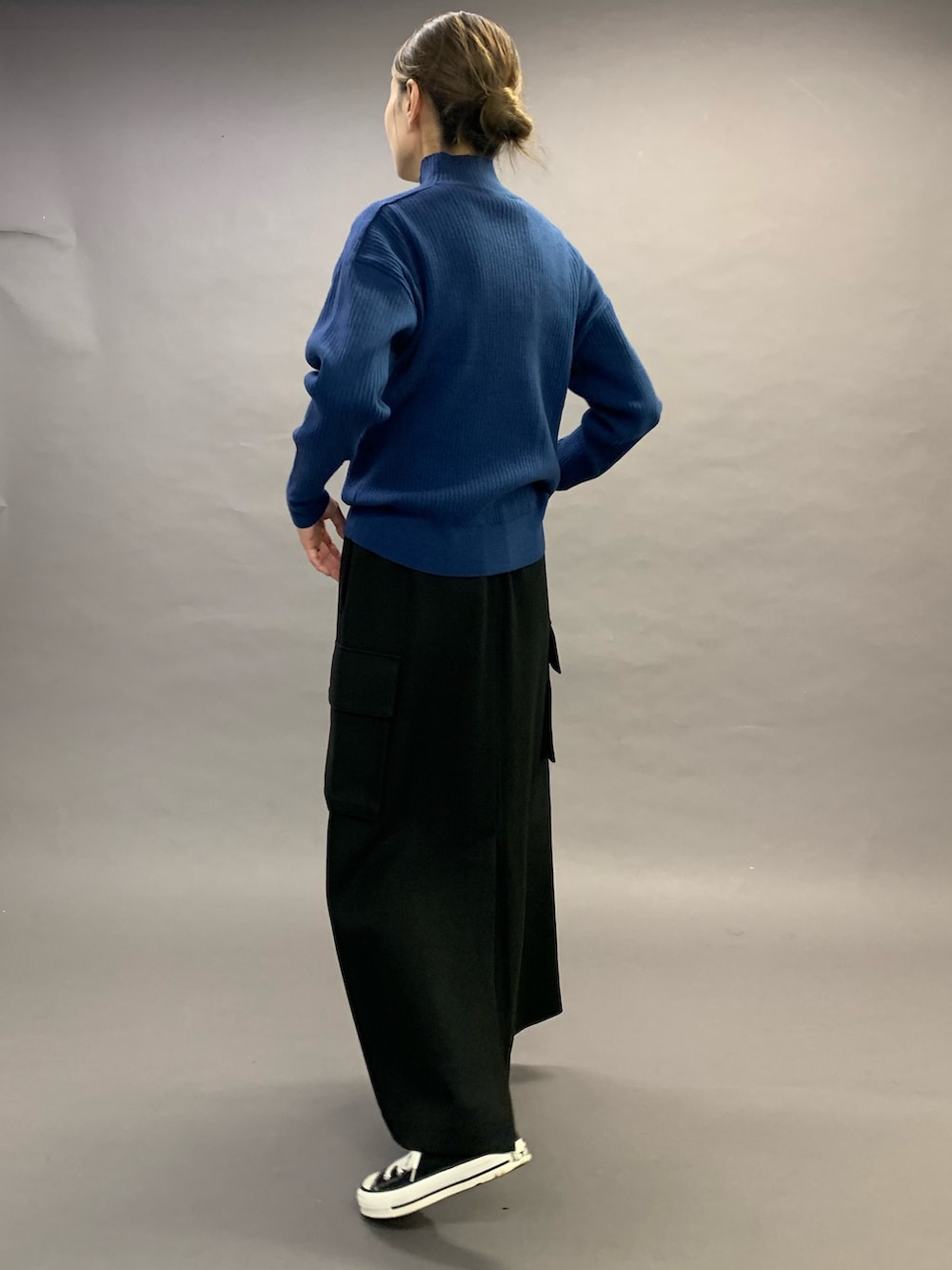 ブルーも落ち着いたカラーで、黒と合わせても目立ち過ぎることなく、チャコールなど暗めの色との組み合わせが増える時期になりますが、差し色として選んでいただけます。