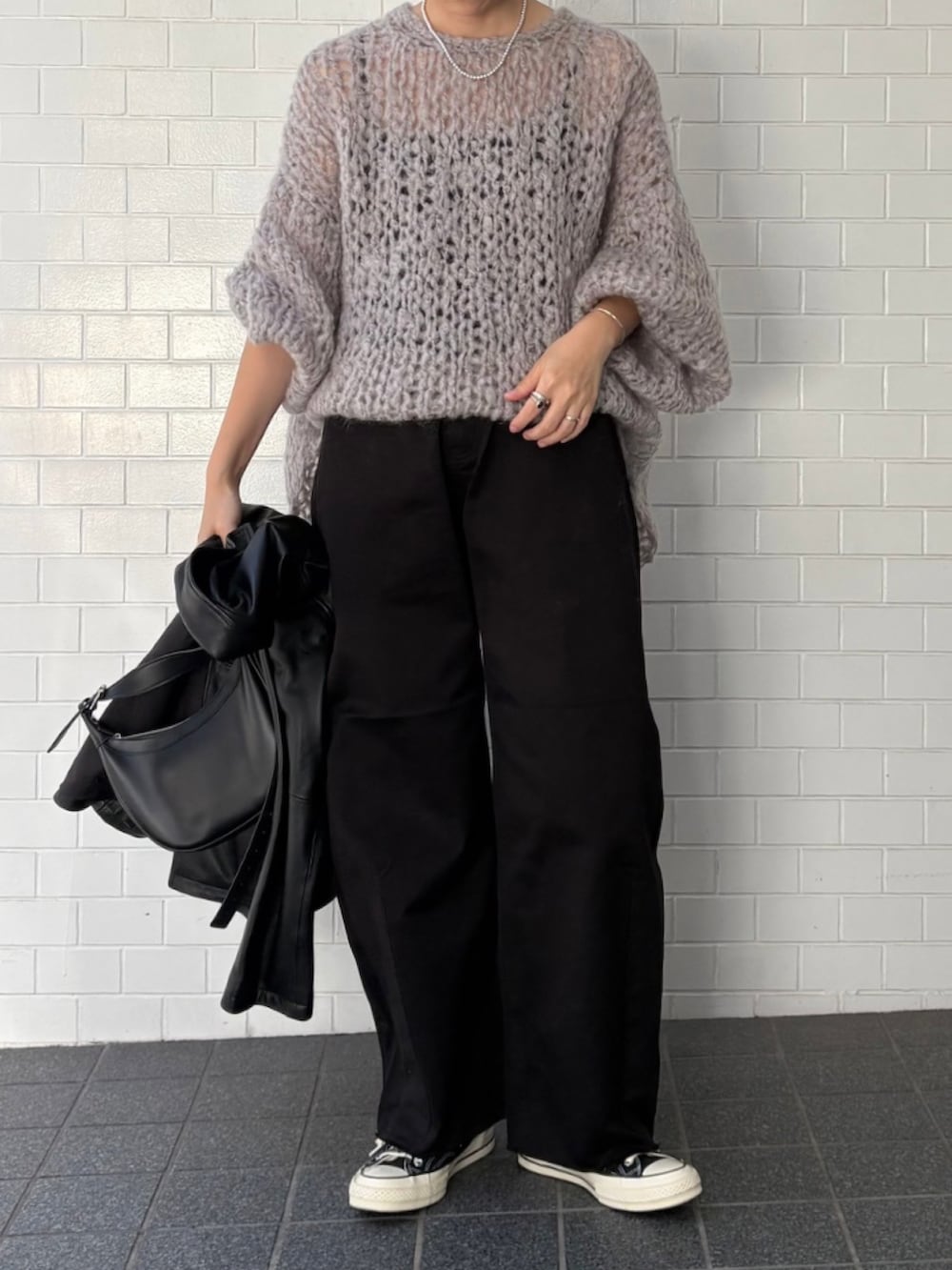インナーにはキャミソールやタンクトップを合わせて、透け感を活かしたヘルシーなスタイリングがおすすめ。ロンTEEやシャツをレイヤードすれば、カジュアルにも着こなせます。