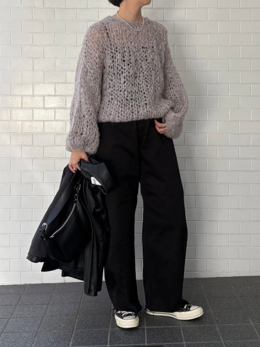 モヘヤブレンドの柔らかな素材に、透かし編みを施し、軽やかな印象に仕上げました。