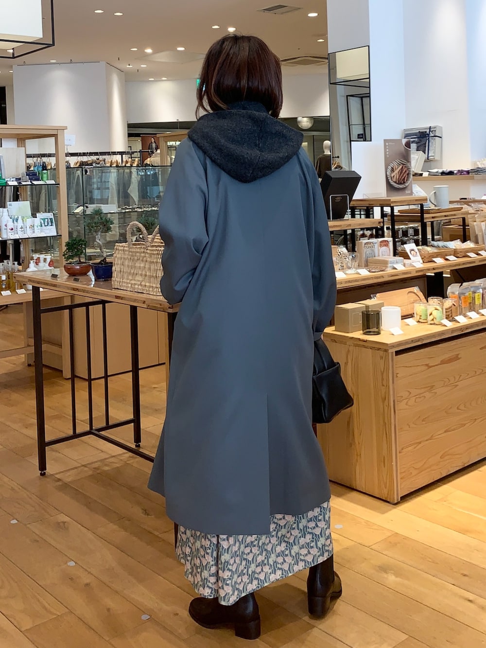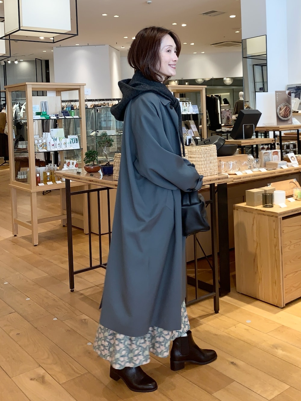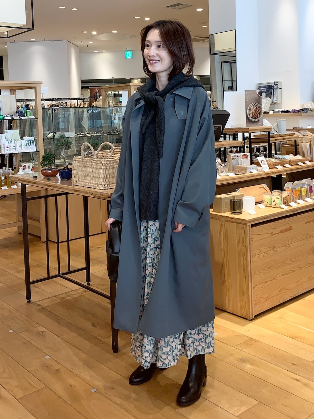 アウターとリバティプリントの色味を合わせて雰囲気のあるコーデに✨