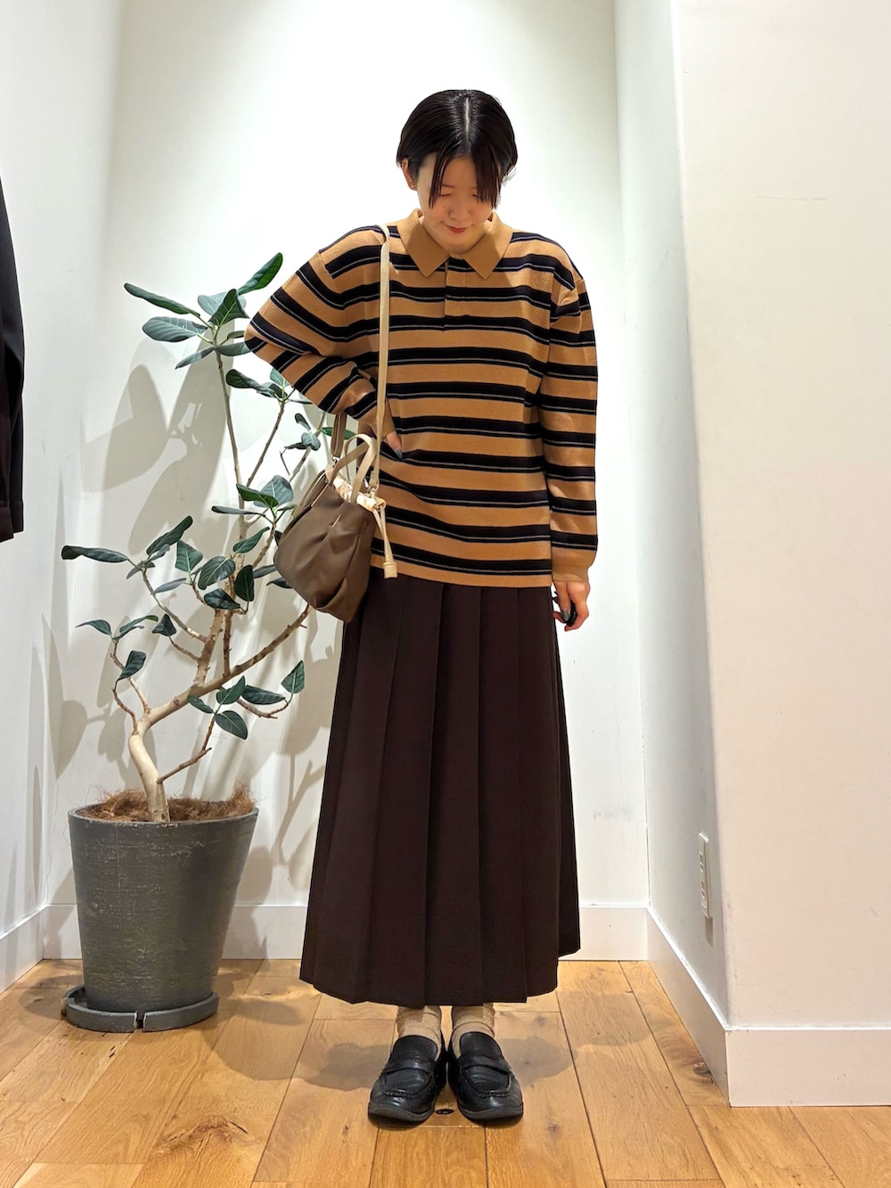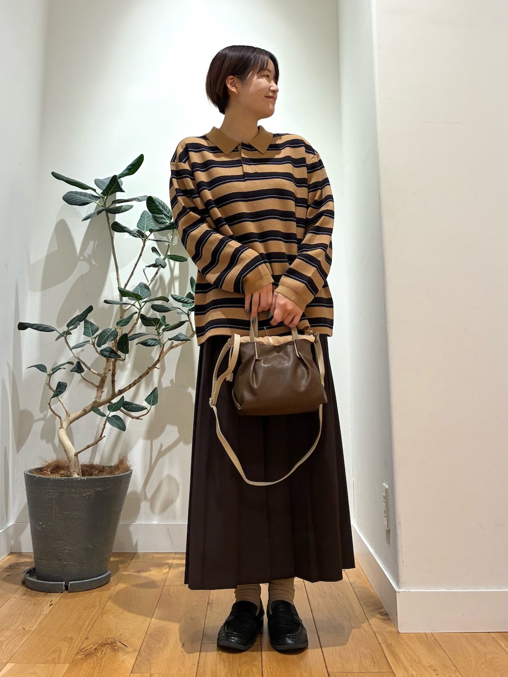 ブラウンスカート合わせが秋っぽくて良いカモです🙂↕️