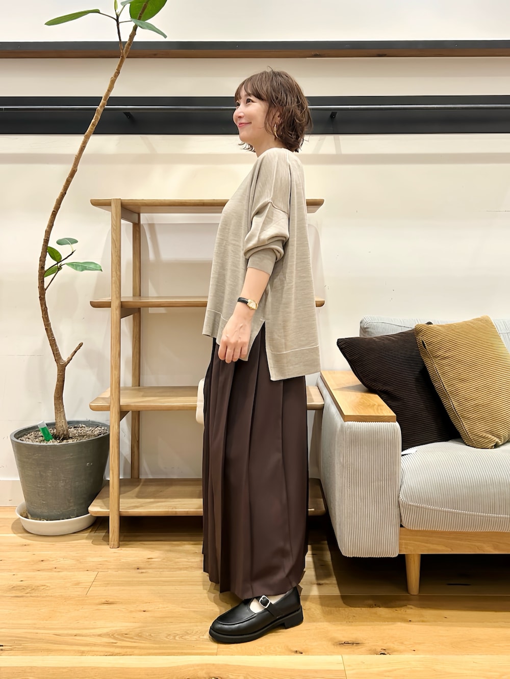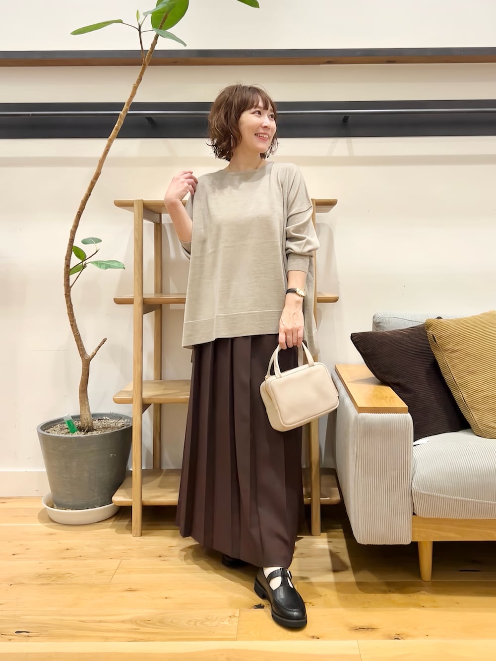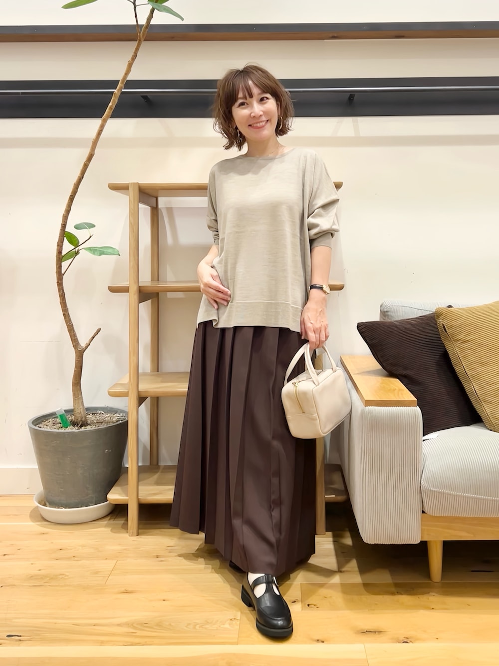 太めのプリーツが大人っぽい印象。