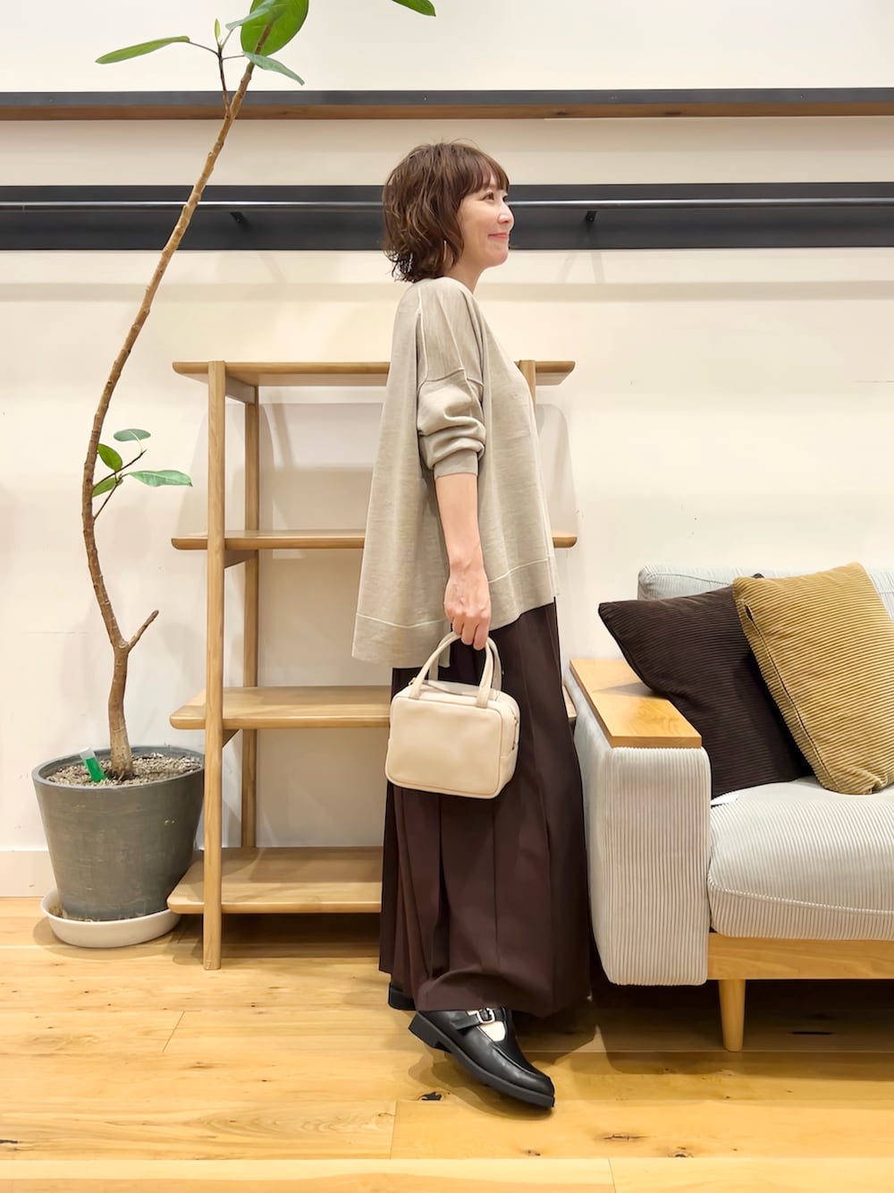 スカートにもパンツにも合わせやすく、着回し力も抜群。