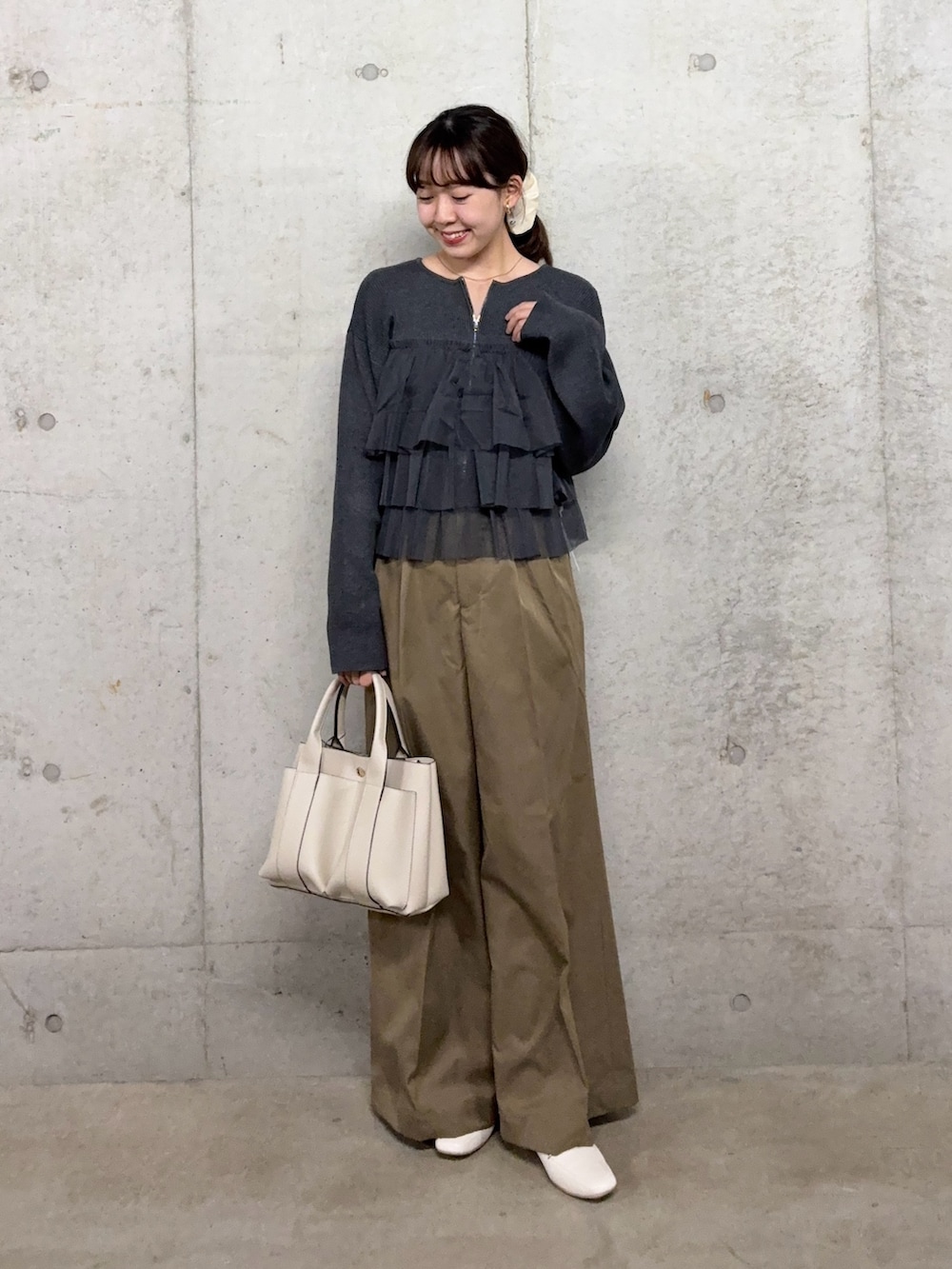 腰周りはすっきりとしているため、フリルのついたトップスなどとも相性抜群🙆♀️