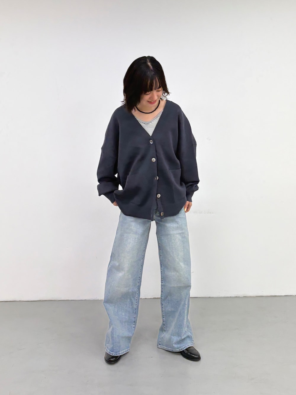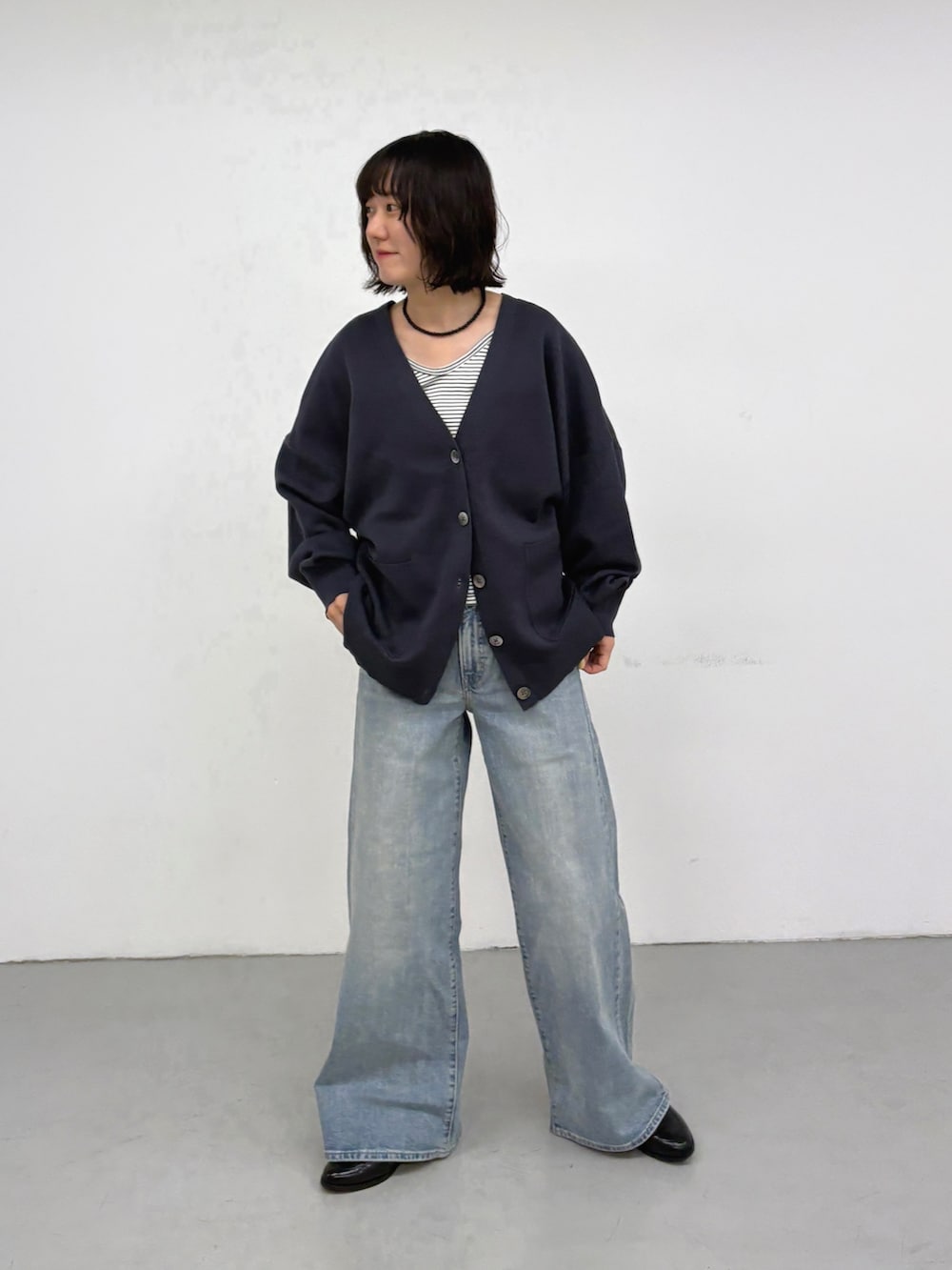 夏の終わりからロングシーズン着られる素材のカーディガンです!