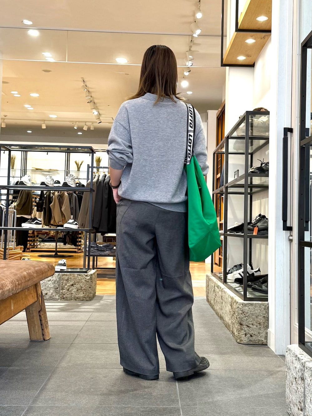 このカーブパンツは形が本当に綺麗で、ワイドだけどしなやかな生地なのでとろみが出てカジュアルすぎずきれいめすぎず!なところがポイント◎
