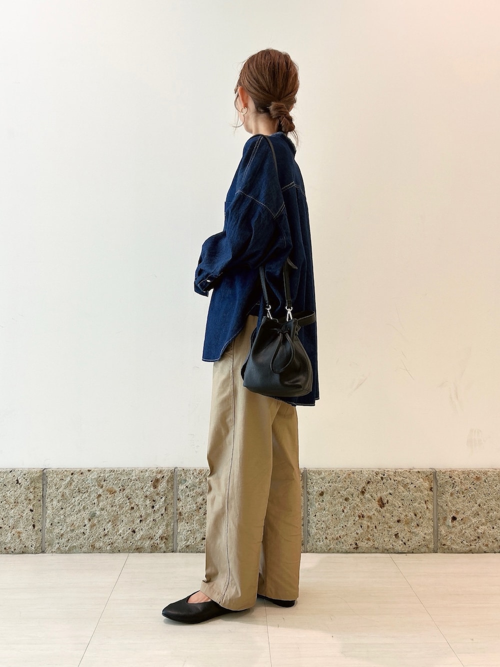 トップスは首元のプチフリンジが可愛いデニムシャツを。