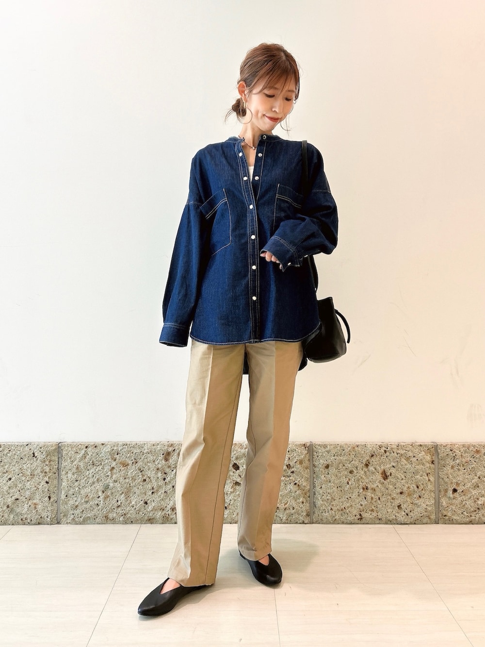 バンドカラーなので、開けて着た時もスッキリ着られて抜け感も出しやすいです◎