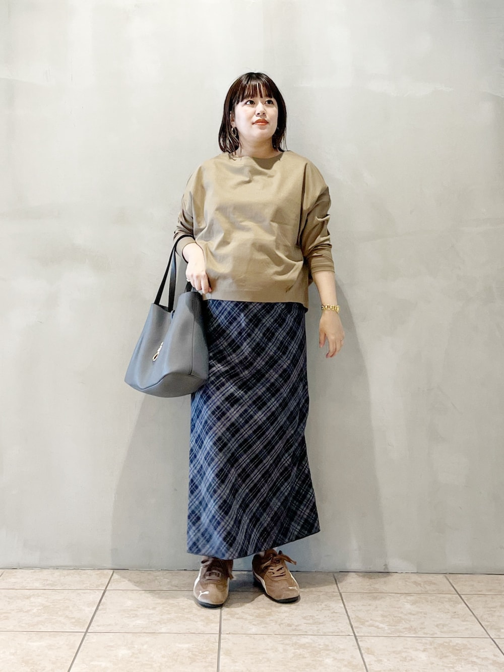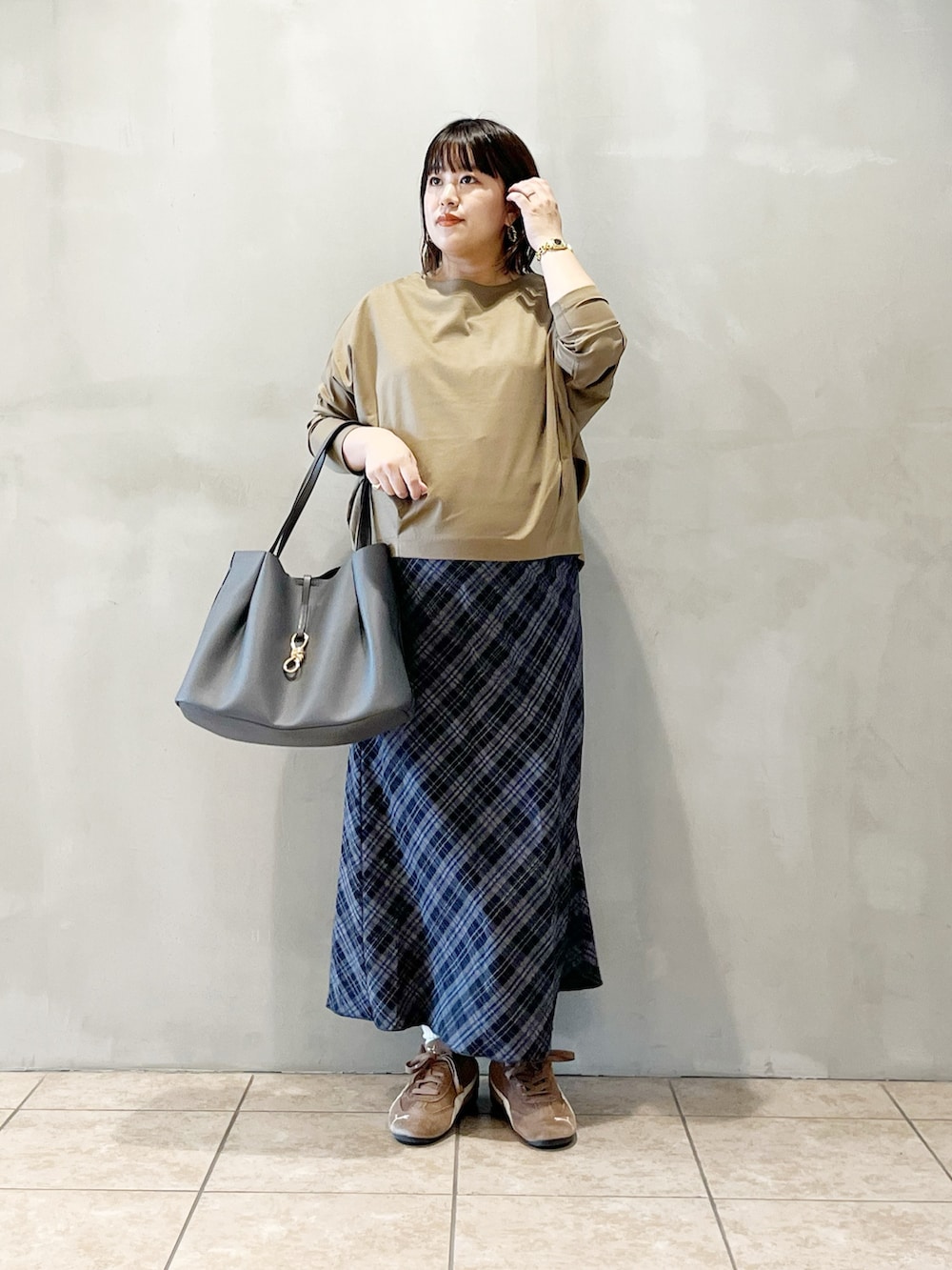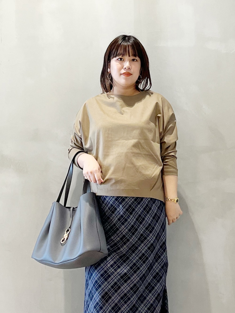 秋冬イチオシのチェック柄を女性らしく取り入れました。