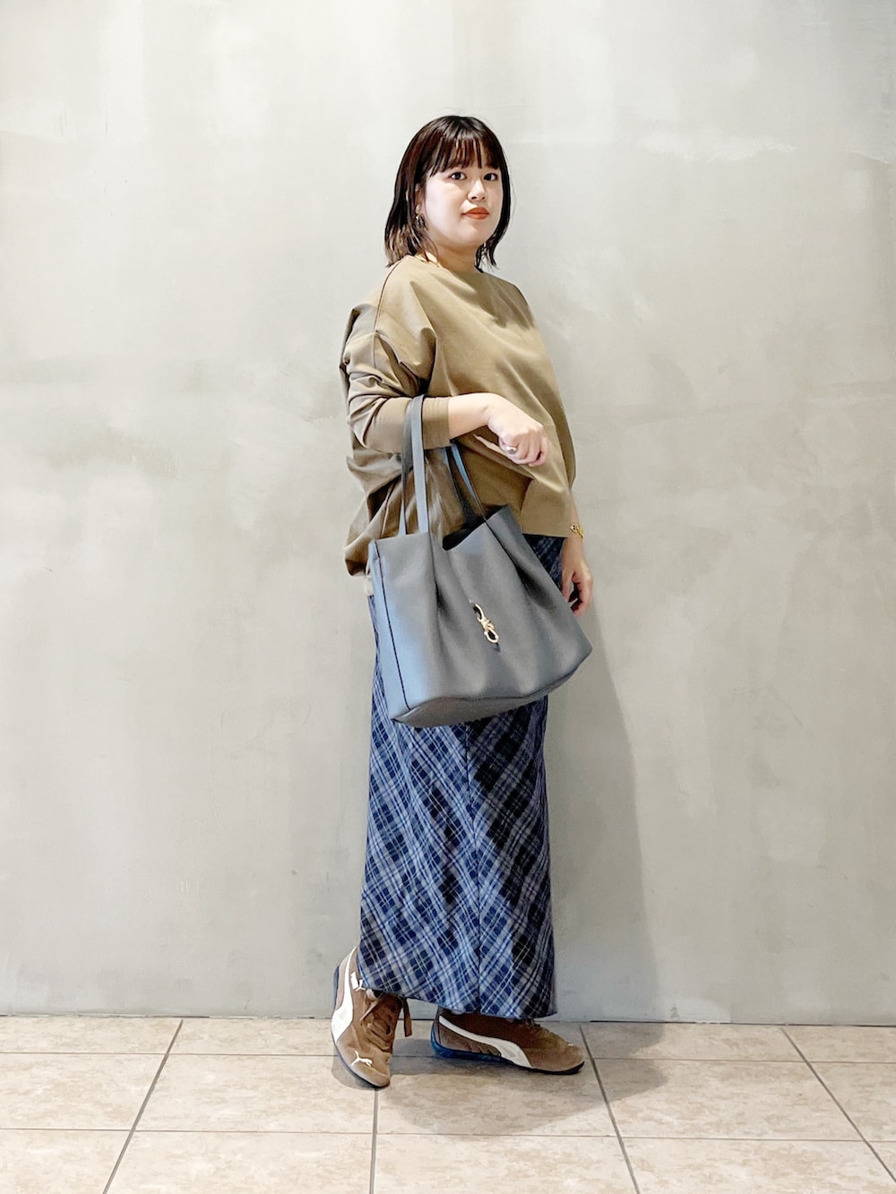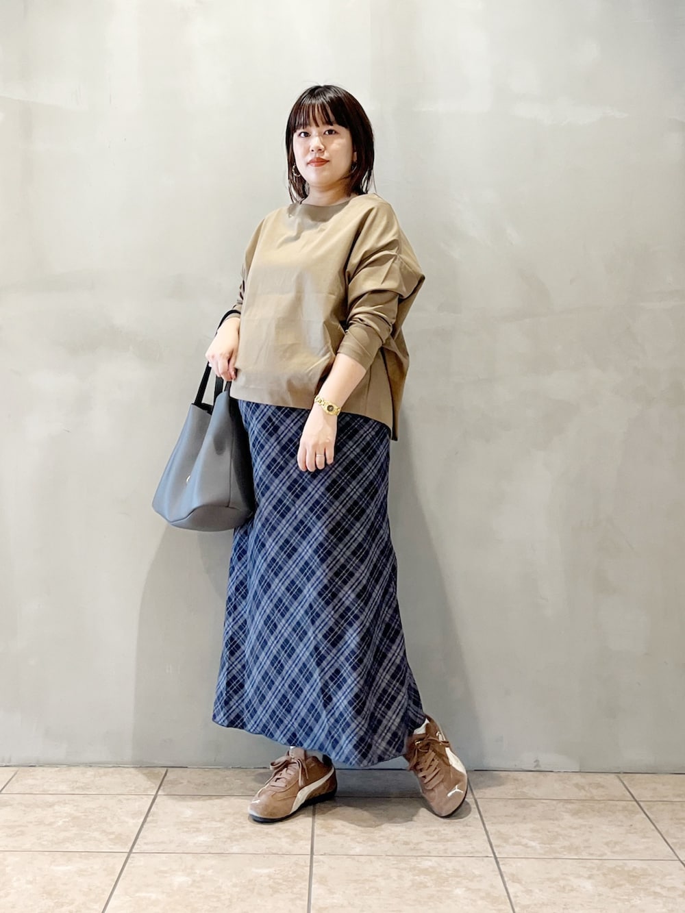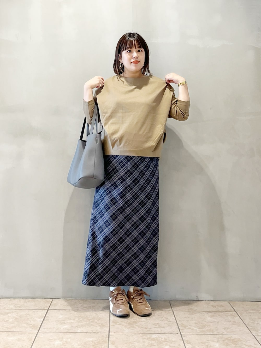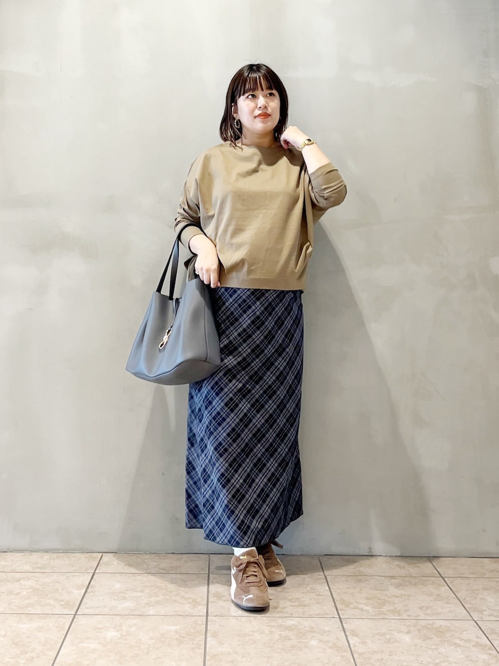 秋冬イチオシのチェック柄を女性らしく取り入れました。