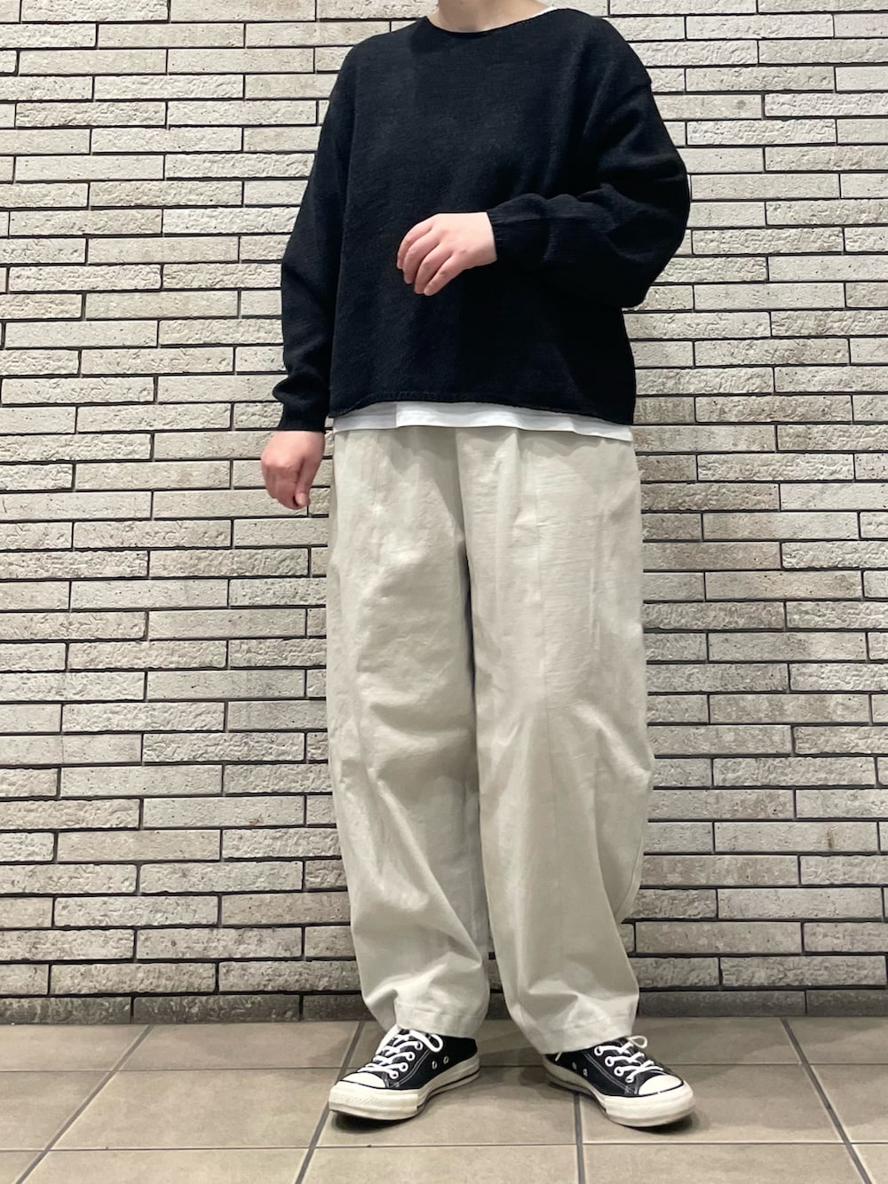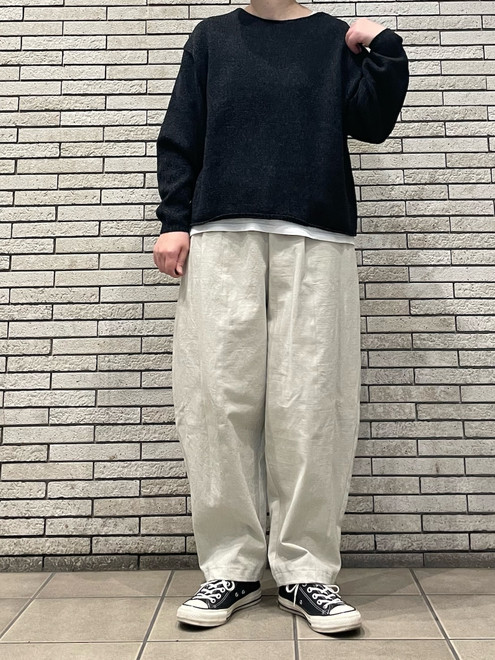 今回はボリュームパンツと合わせて、大人カジュアルです。ぜひお試しくださいませ💐