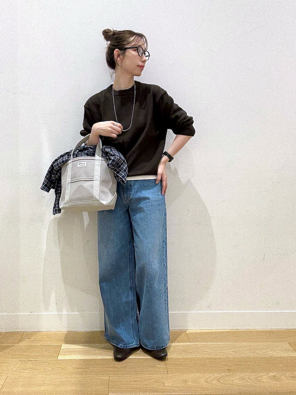 200日ニットはもっちりとした肌触り◎カジュアルにも上品にも使えるのでブラウンが個人的にイチオシ✨ポイントはチラッと覗かせたインナーの白。