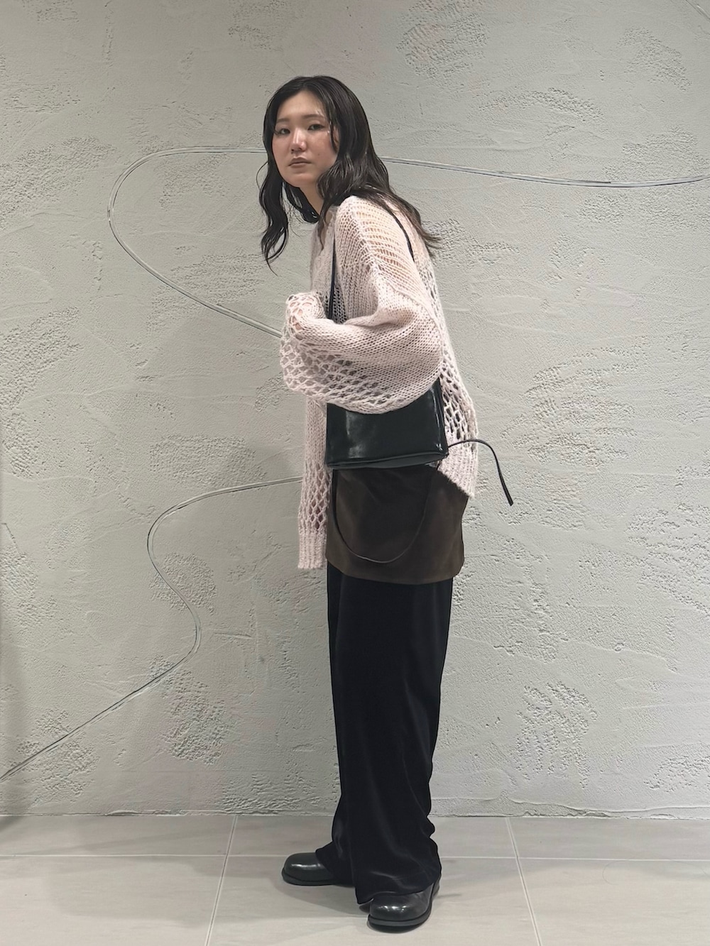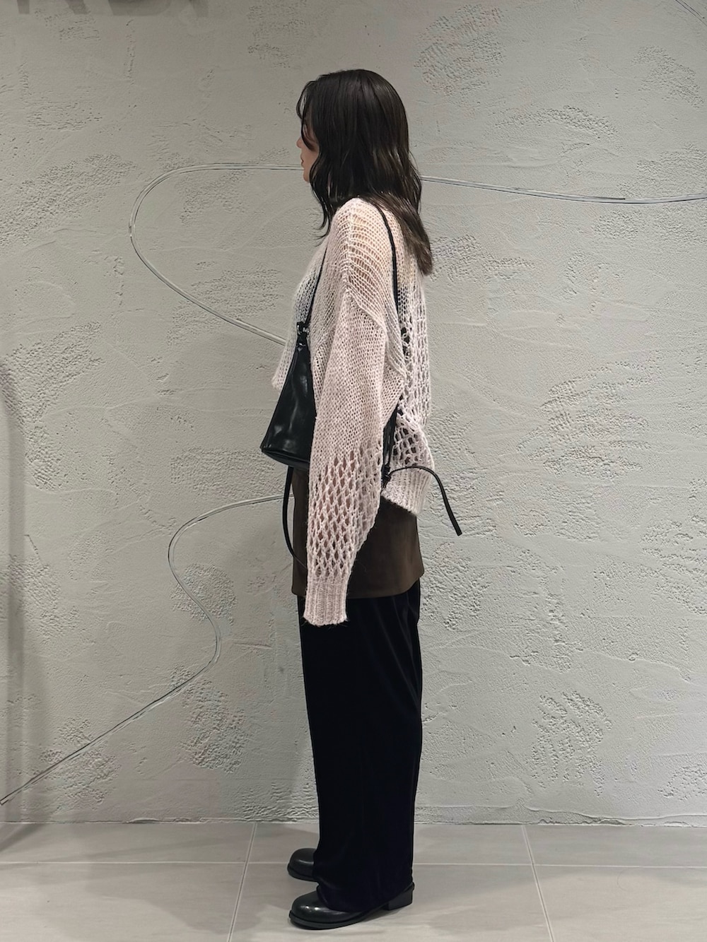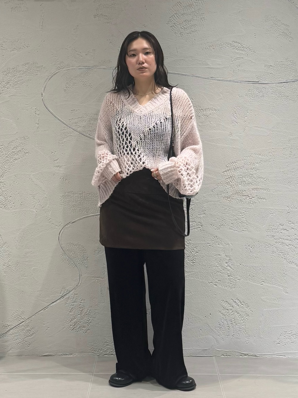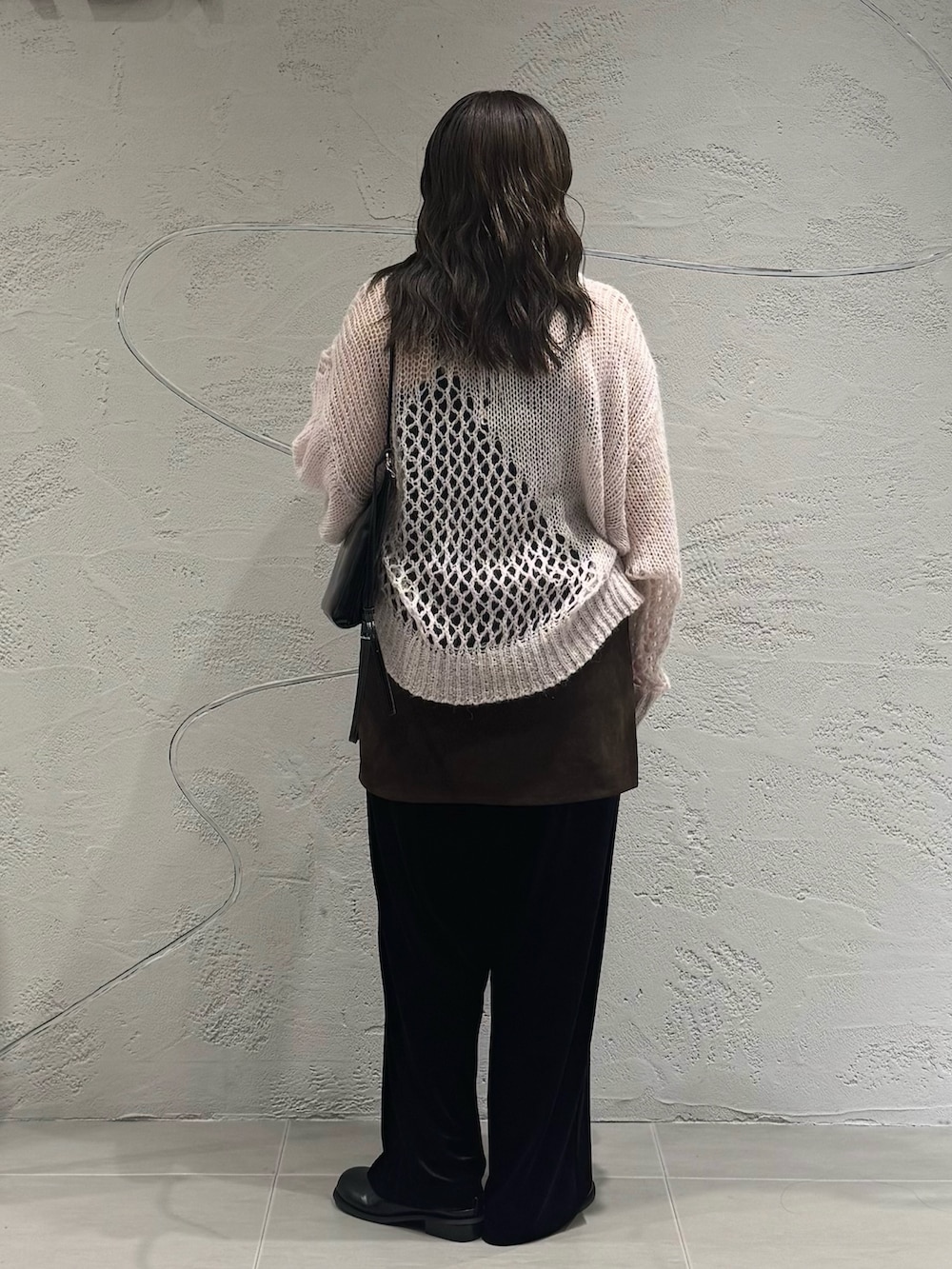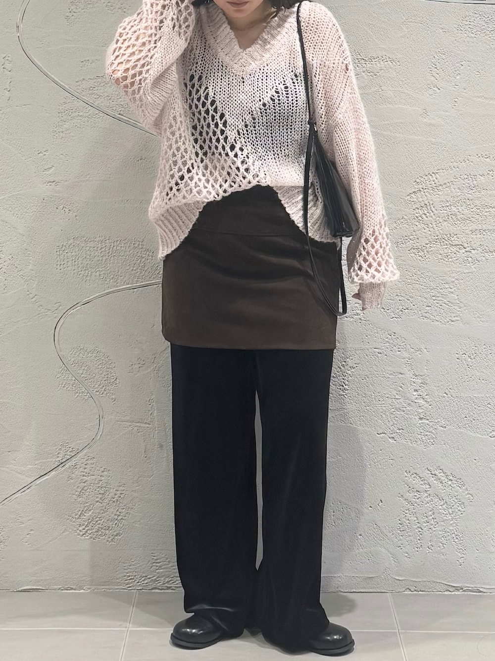 3種類の編み方を切り替えたデザインで、抜け感をプラスしてくれるVネック開きもポイント!