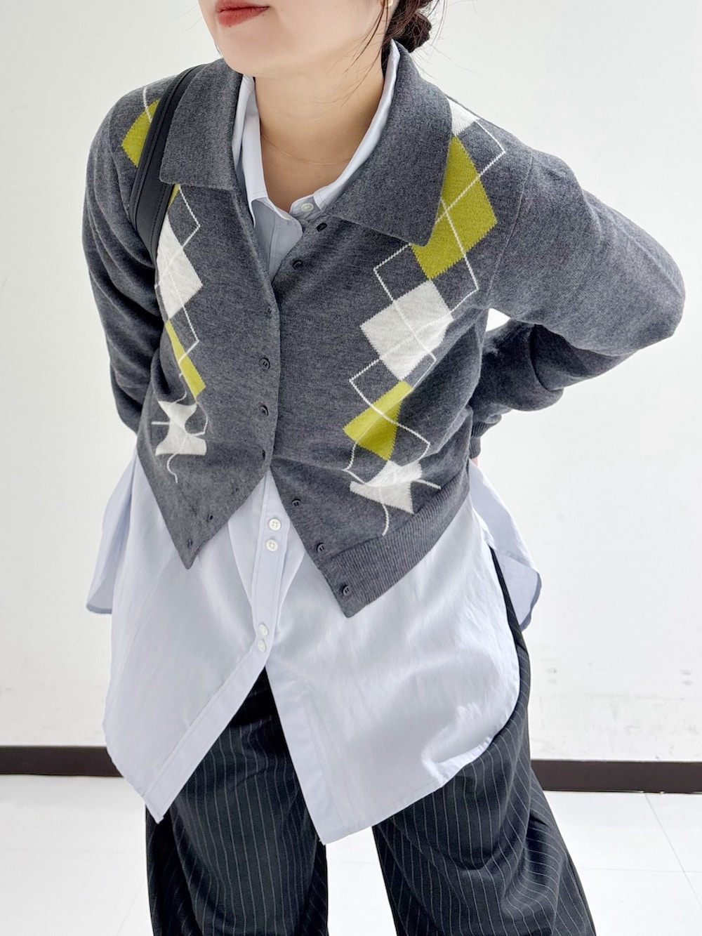 URBAN RESEARCHアーガイルシャツカラーカーディガン