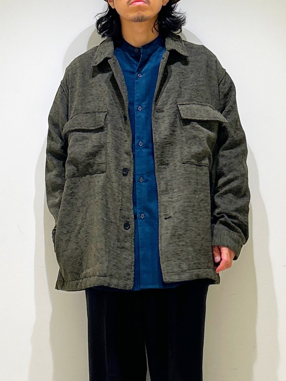 厚手でしっかりとしたシャツのような佇まいながら、袖やシームポケットのデザインはアウターらしさがあり、シャツアウターとして羽織ることのできる一着。