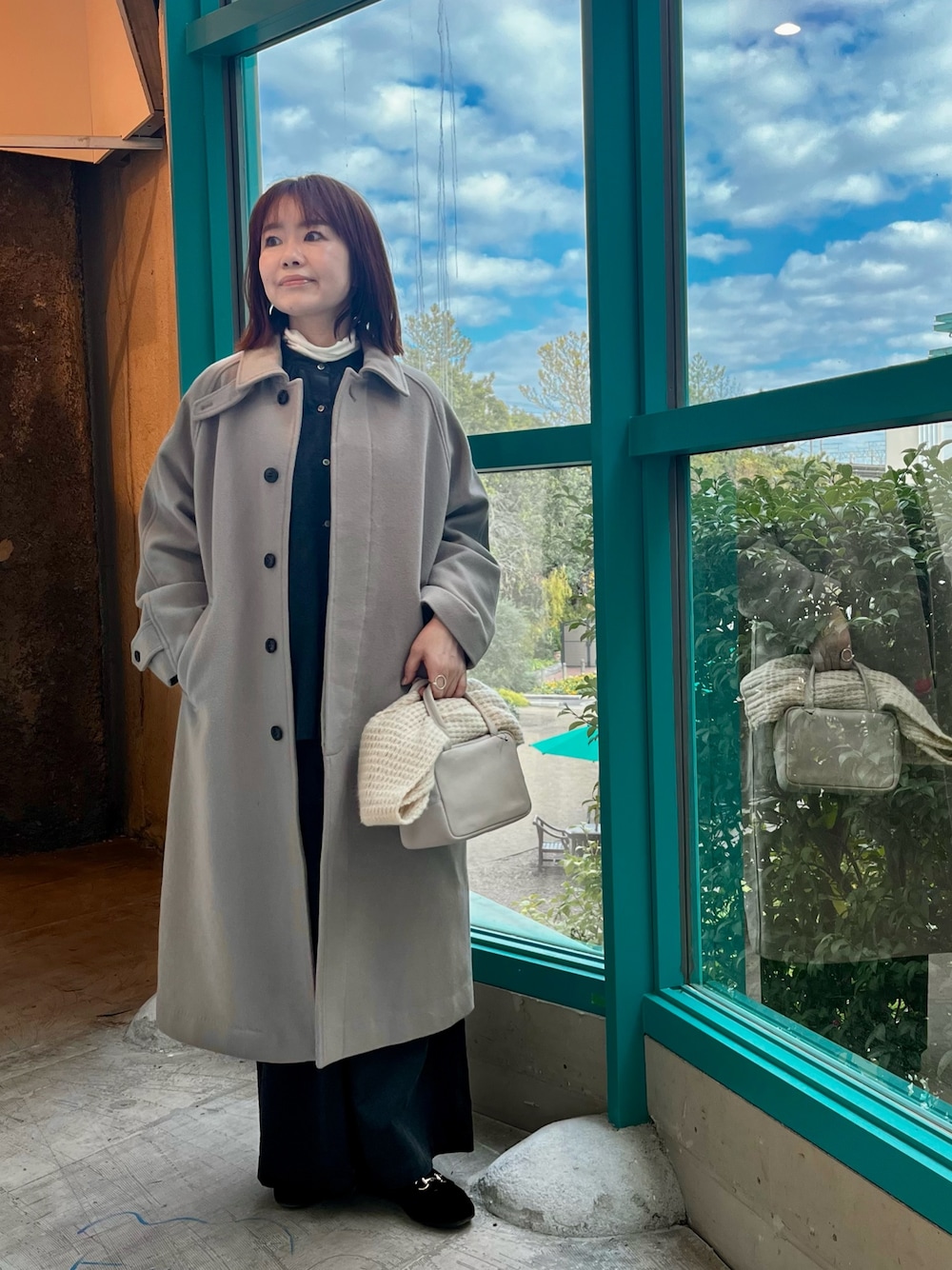 今回はノーカラーのシャツワンピに合わせましたが襟付きのシャツでもタートルネックカットソーでも◎