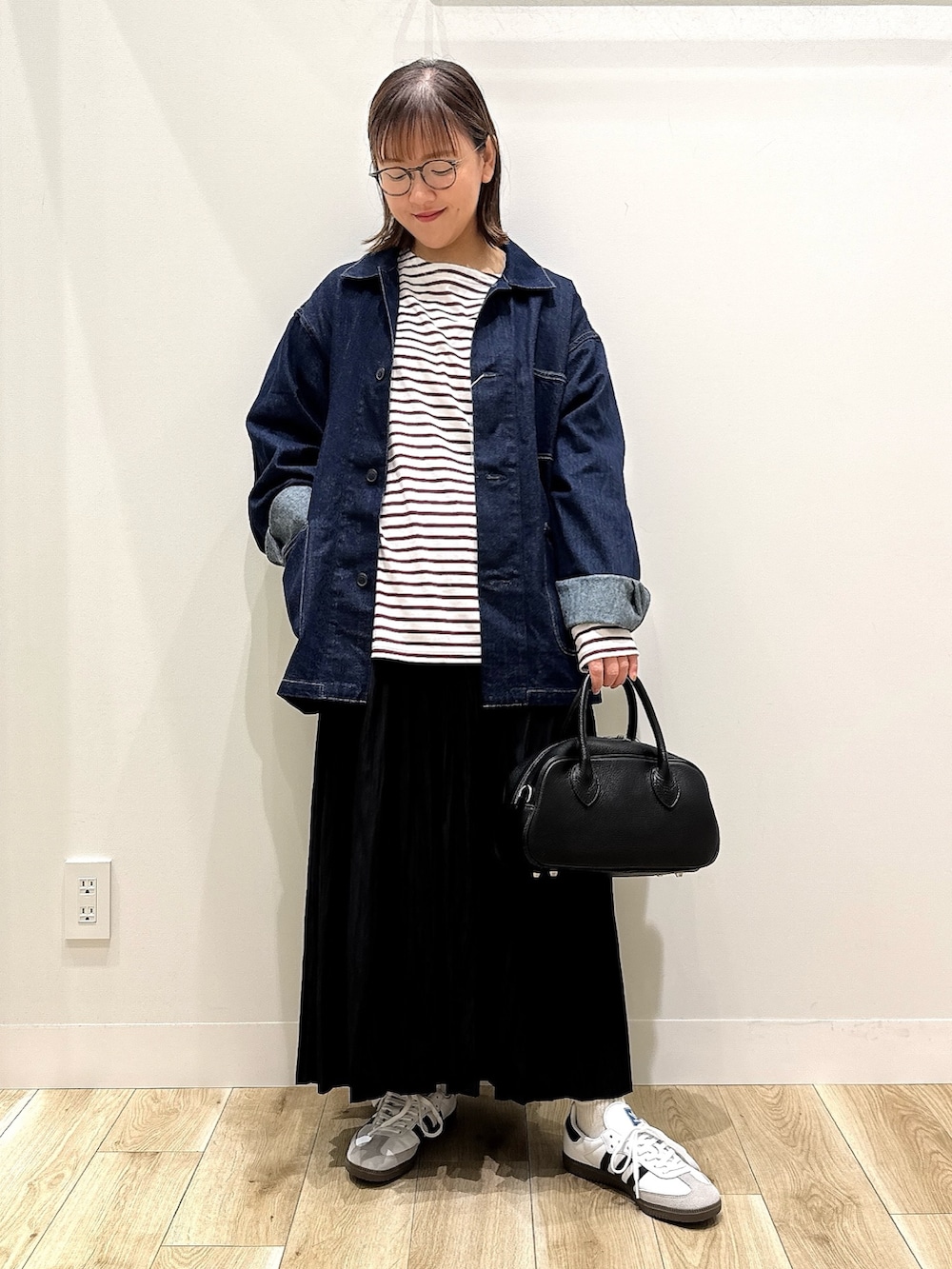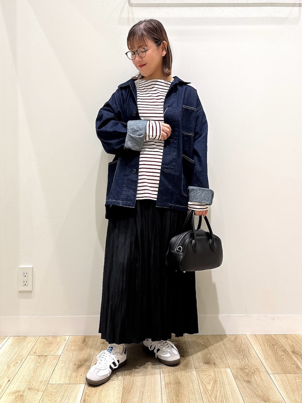 メンズライクでゆったりとしているので腕まくりをしてインナーのボーダーを袖口からチラ見えさせたのがポイントです🤲🏻