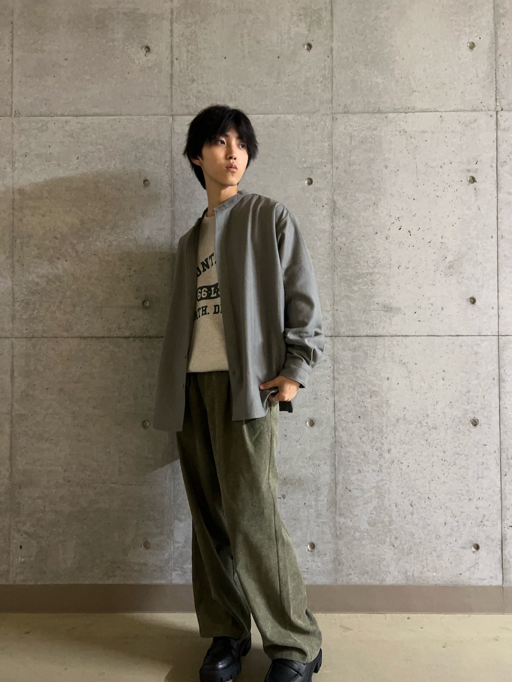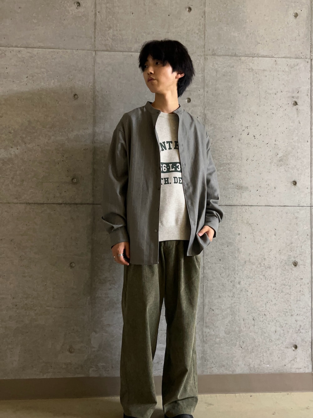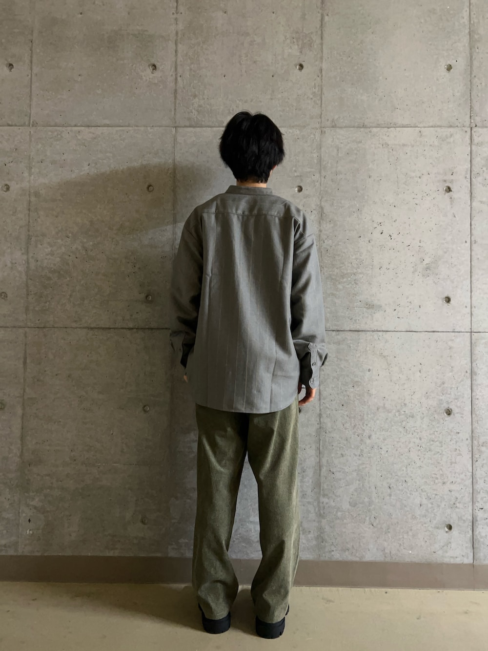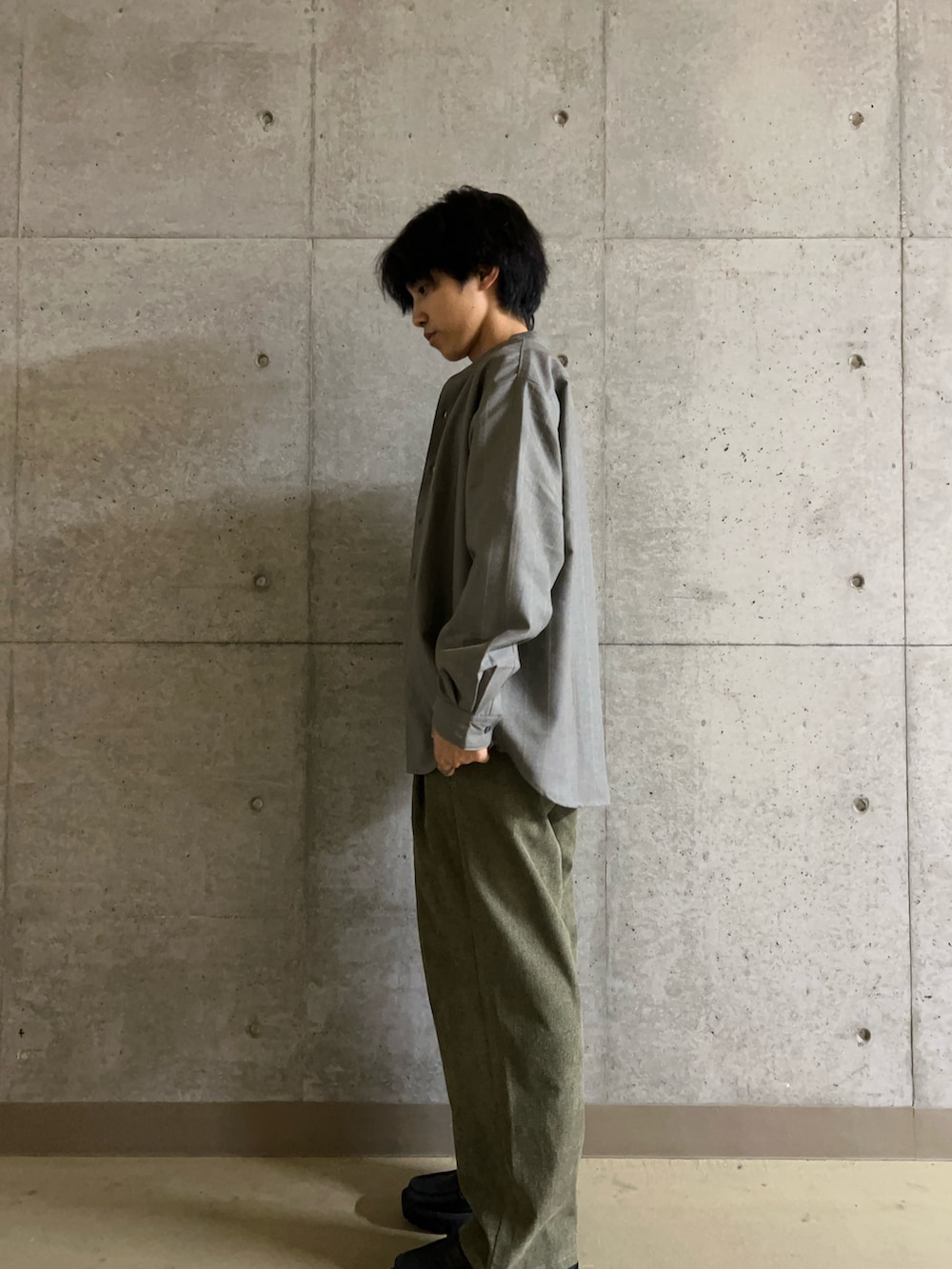 今回は深みのあるGLAYのバンドカラーシャツとKHAKIのコーデュロイパンツを合わせることで渋くてかっこいい、大人のコーディネートにしてみました!秋にぴったりなカラーでもあるのでぜひ試してみてください!