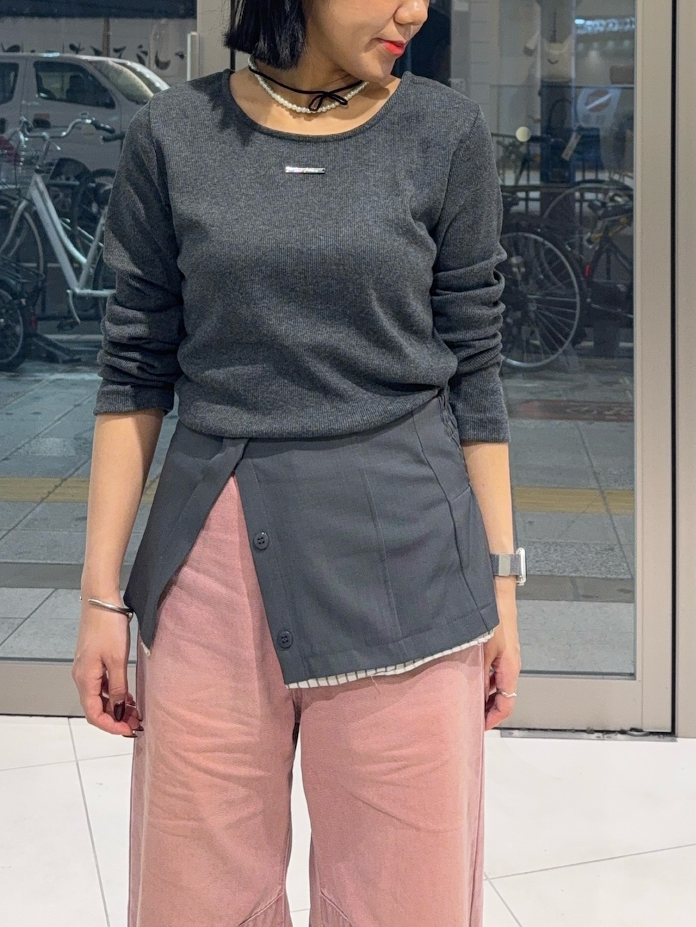 チャコールとの合わせでシンプルですが、大人っぽい印象に💗