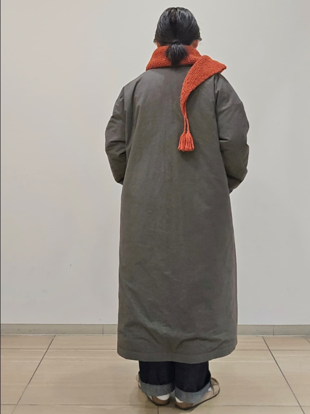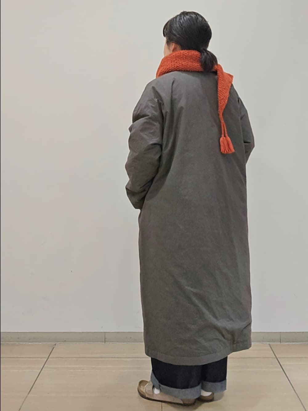 チャコールは一見すると渋く見えますが、何にでも合わせやすく、カラフルな小物を持ってきていただくと映えます!