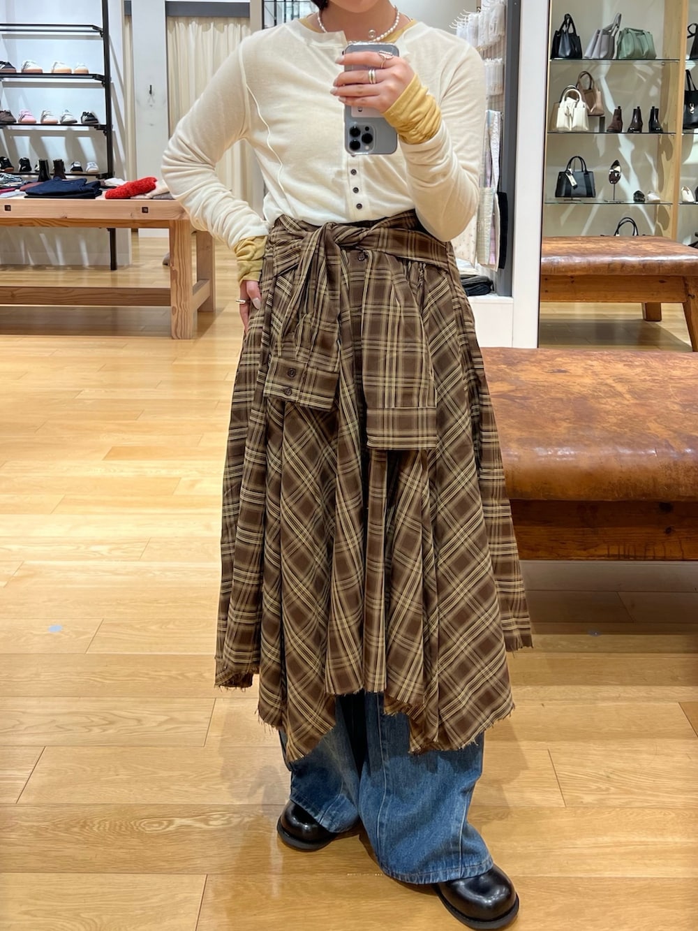 スカートとデニムをmixして