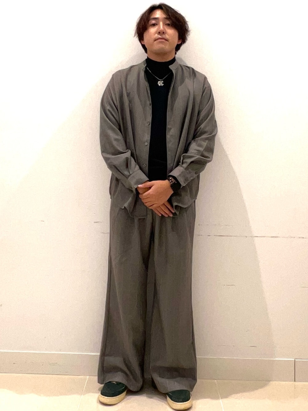 SENSE OF PLACEウールタッチストライプバンドカラーシャツ
