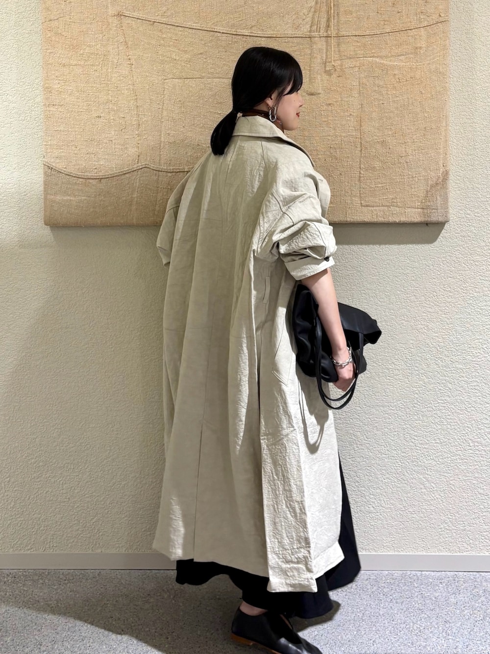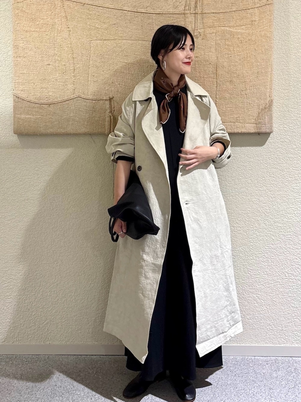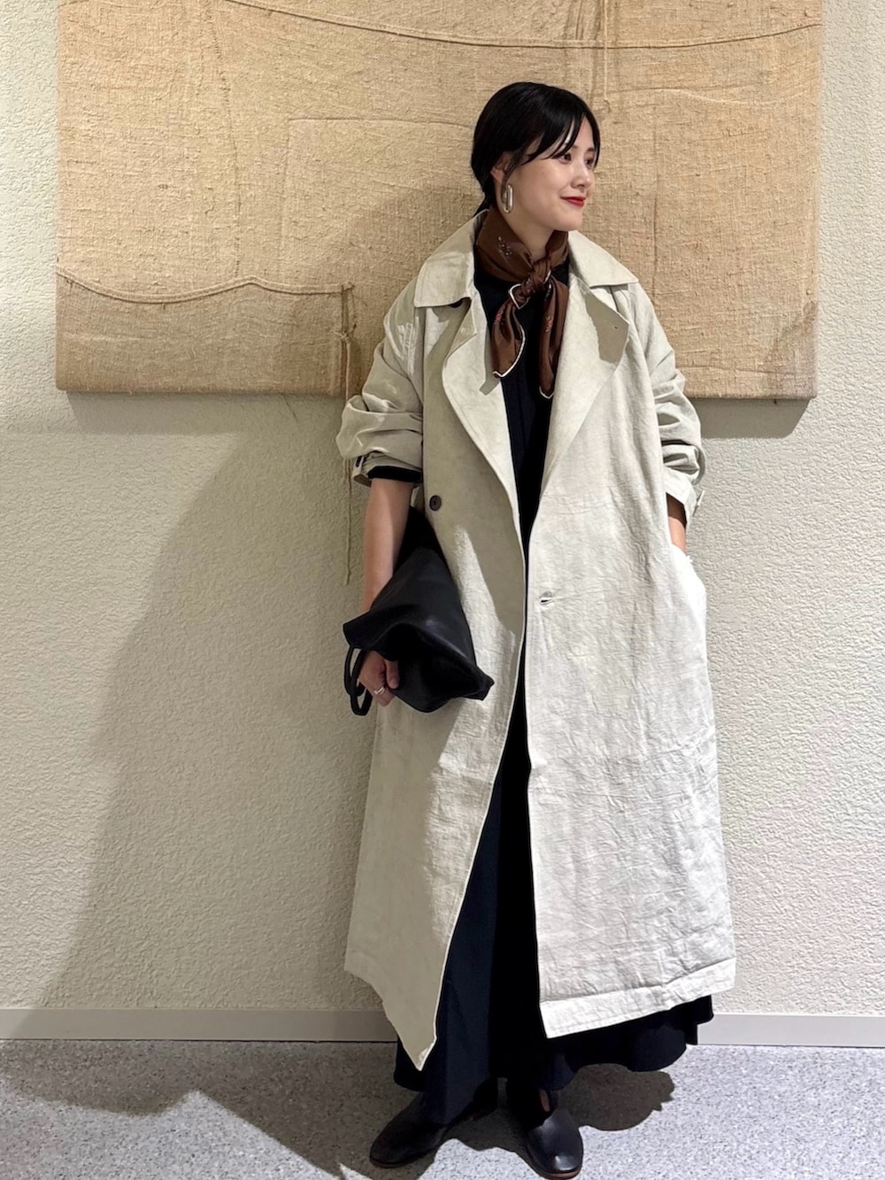 コットンリネン素材を使用した、軽やかでナチュラルな風合いのトレンチコート。ほどよくオーバーなシルエットが抜け感を演出し、羽織るだけで大人らしいこなれた印象に。ライトベージュの柔らかなトーンが春秋の装いを明るく見せてくれます。