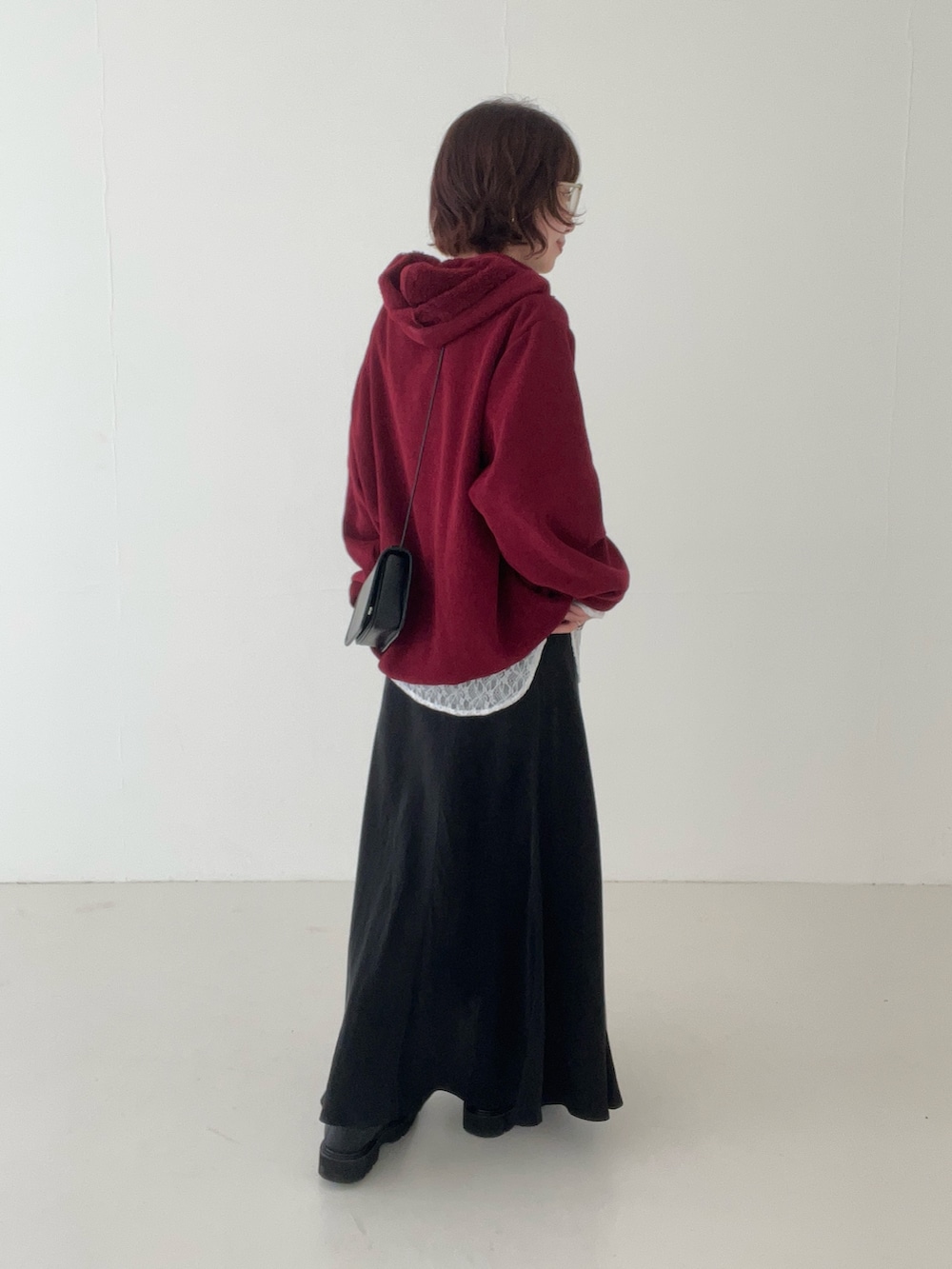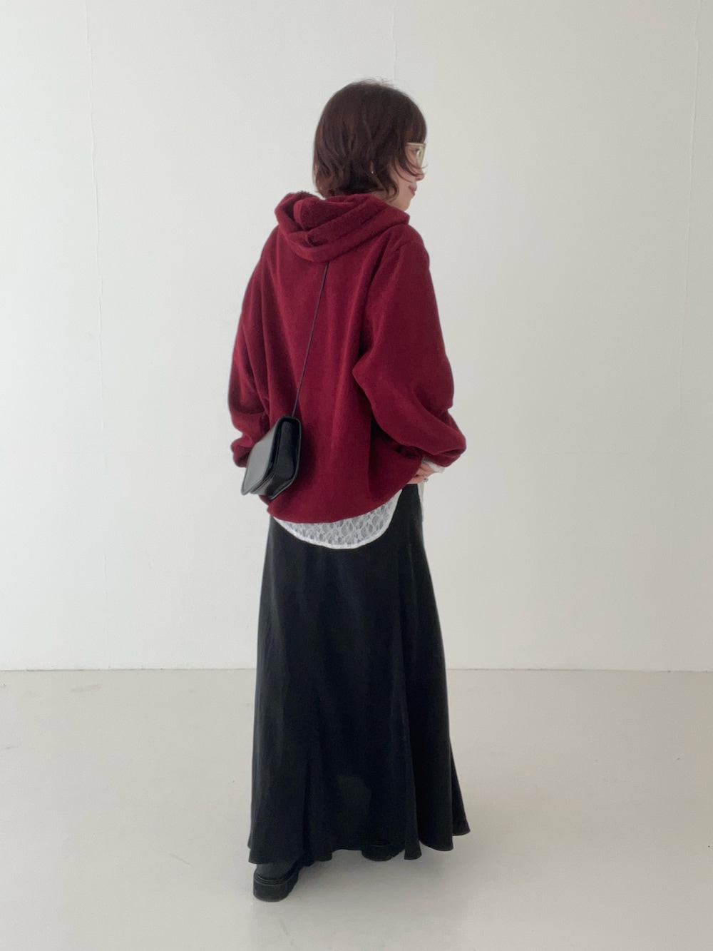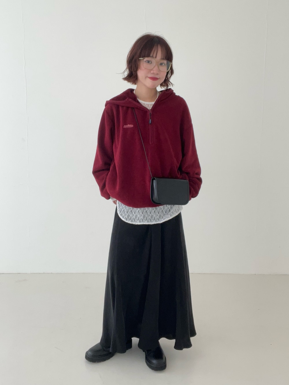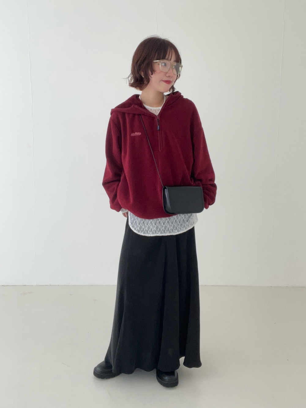 ゆとりのあるシルエットで着膨れもしないのでインナーやシャツとのレイヤードスタイルもできます🙆♀️