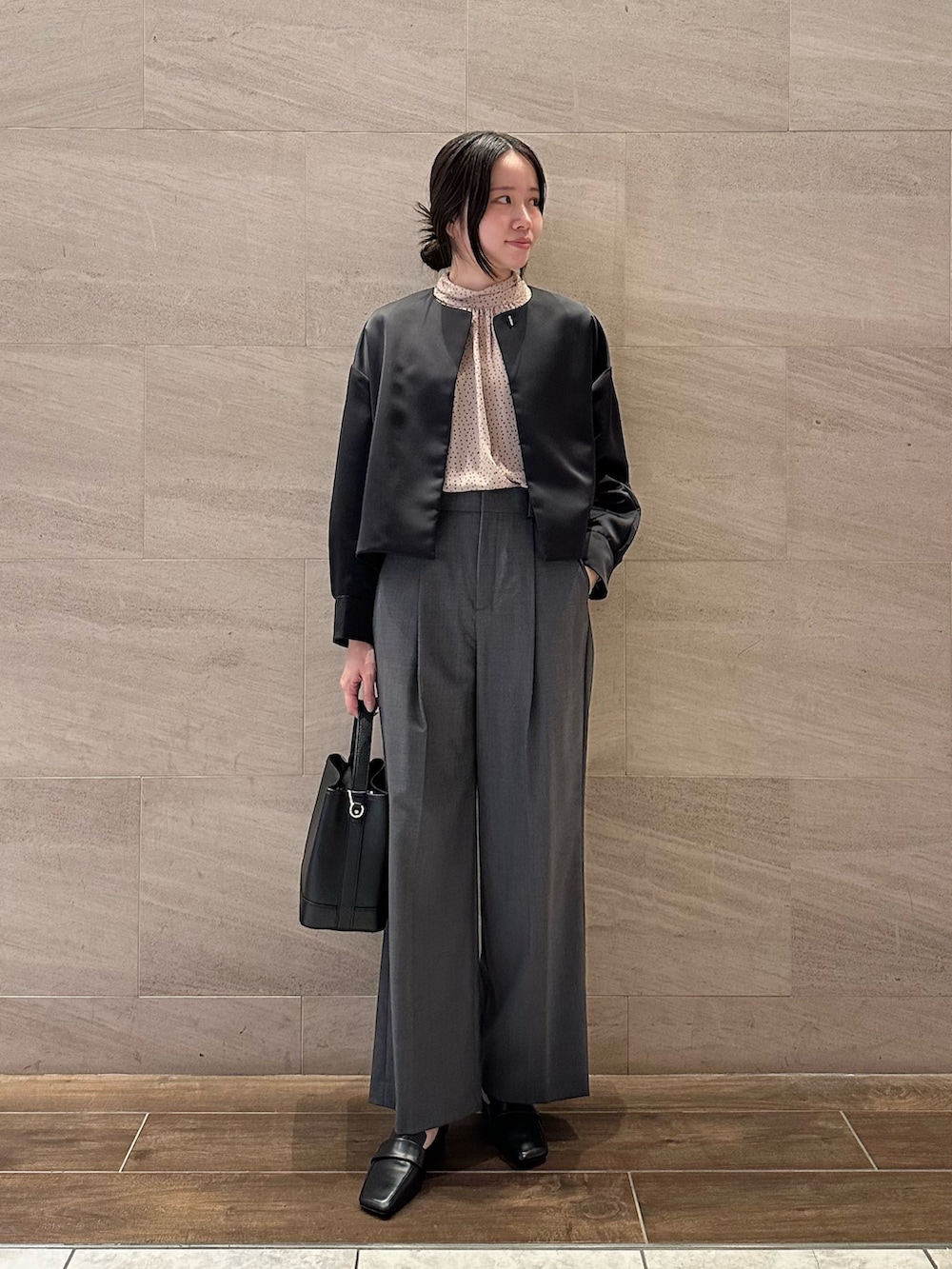 ブルゾンは光沢感のあるマットサテンで、羽織るだけできちんと感を出してくれます♩