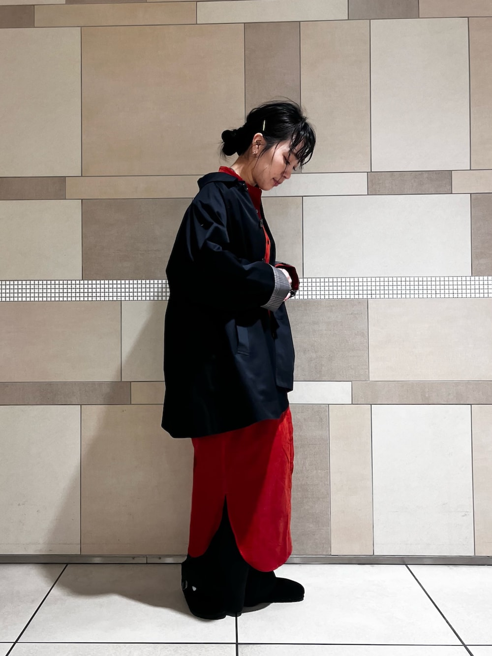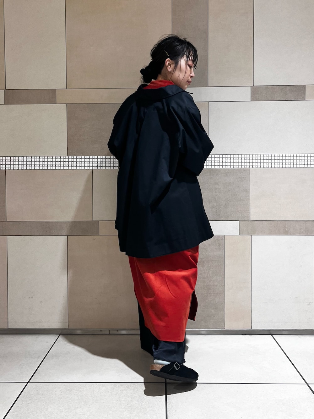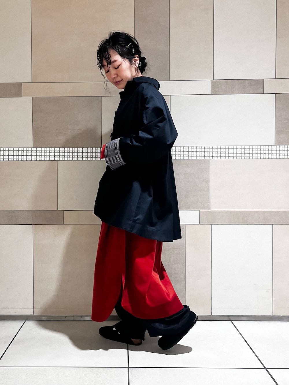 Aラインのほんのり広がりのあるシルエットですが、落ち感もあるので大きく見えづらい優秀デザイン