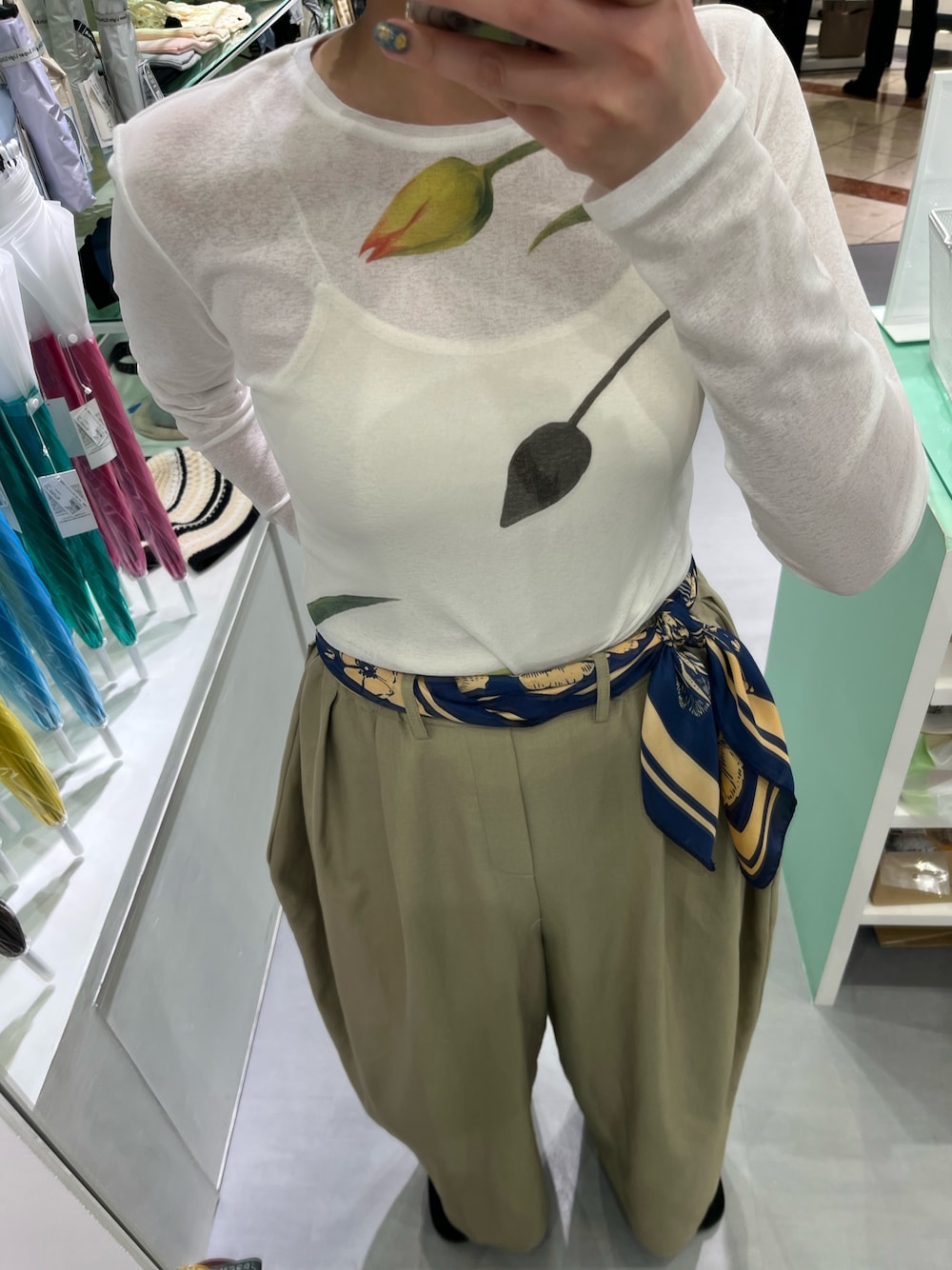 今の時期は軽めのトップスをインナーに合わせて、もう少し寒くなればタートルネックなどニット素材と合わせていただければ長く使っていただけます!