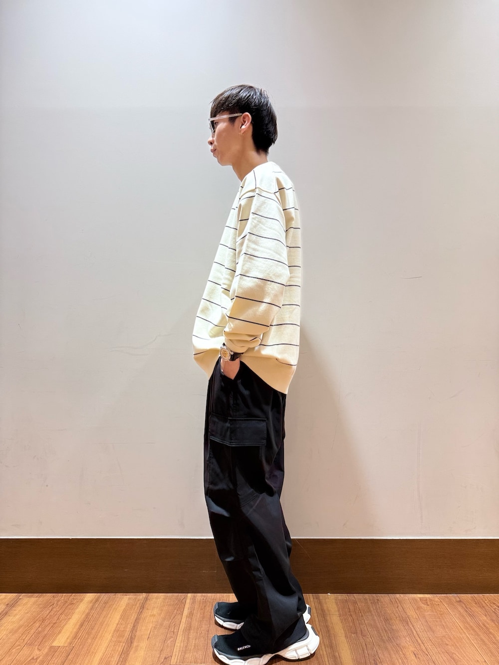 カーゴパンツで少し野暮ったさをプラスしたコーディネート。