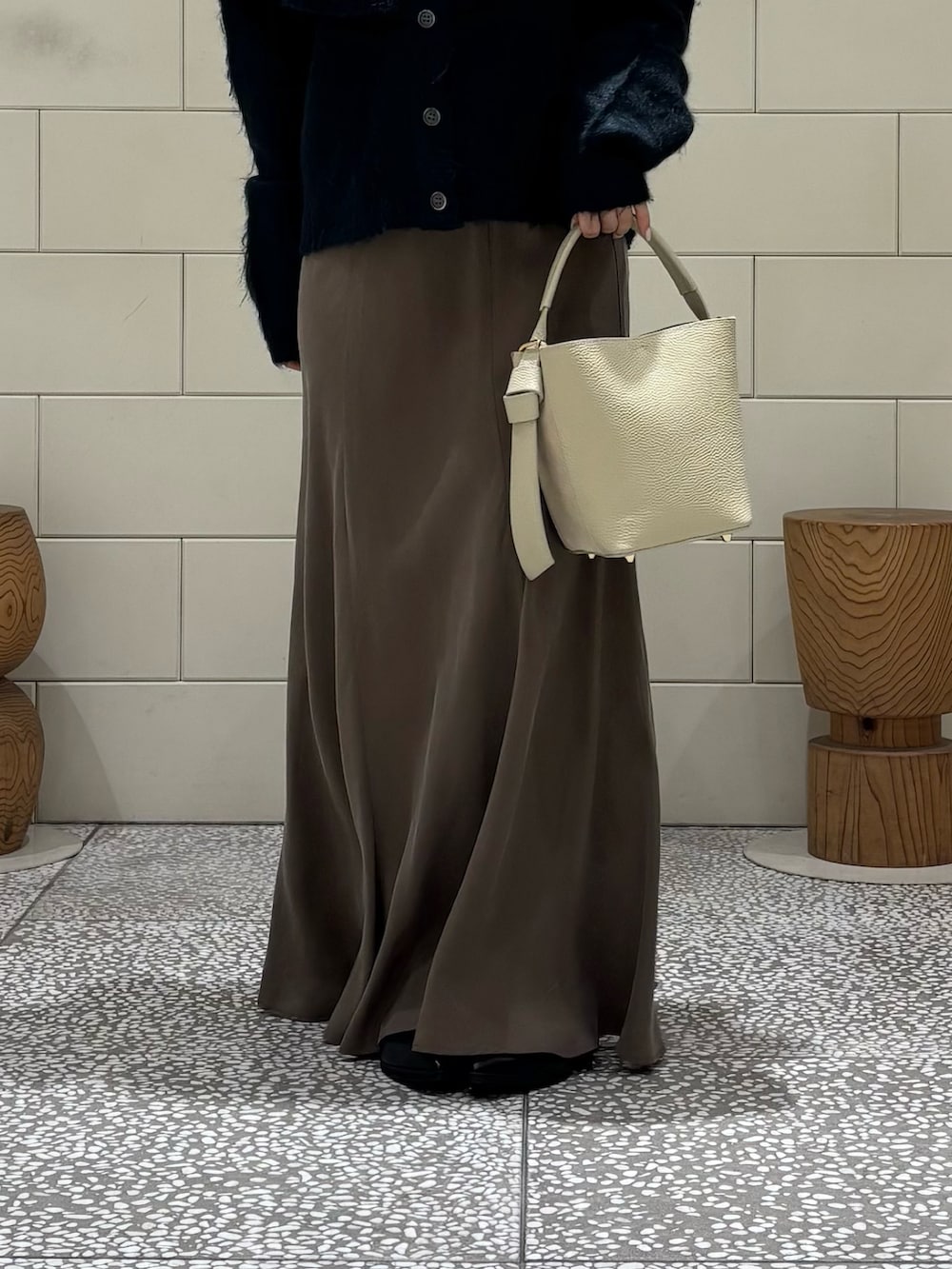 テロっとした生地感が特徴のキュプラスカートです。スッキリとした綺麗なシルエットが叶います。
