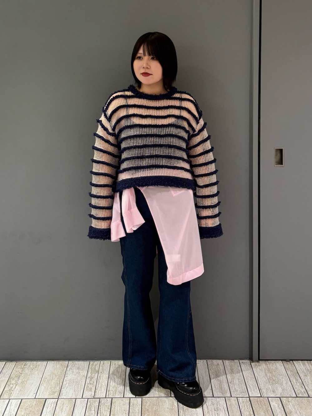 ニットの配色とシアーの透け感が可愛い主役級のニットです⸝꙳.˖着丈はショート丈なのでハイウエストと合わせるとスタイルアップが叶います🪄