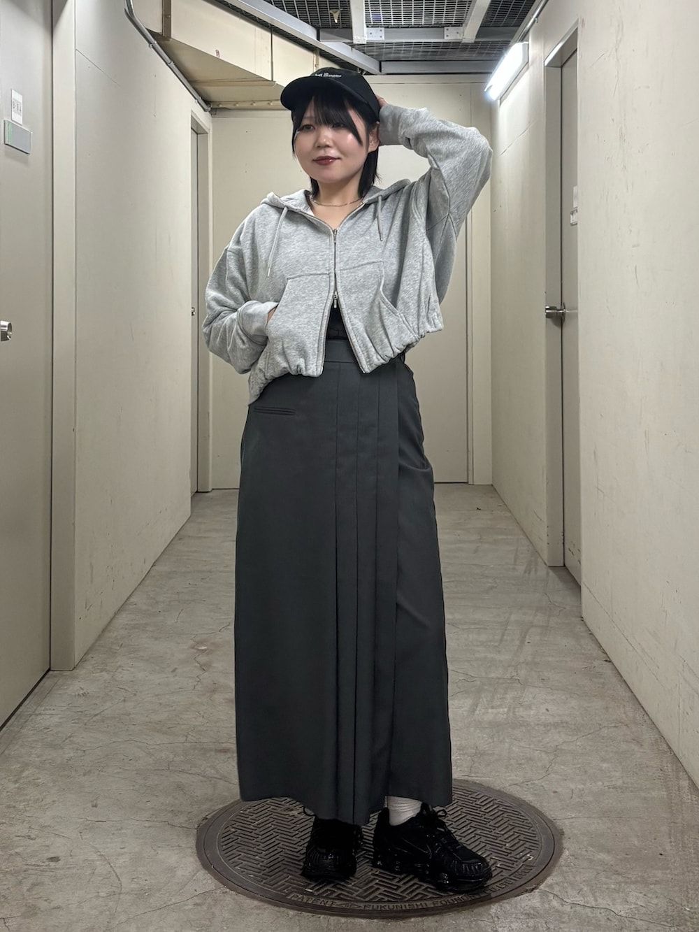 プリーツのロングスカートをコーデの外しに持ってくることでカジュアルに寄りすぎないようにしてます.ᐟ.ᐟ.ᐟ