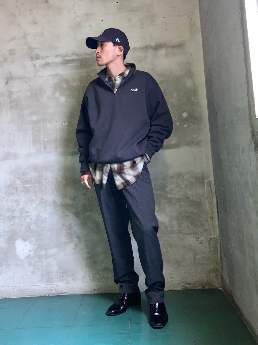 ハーフジップ物はVゾーンで少し軽さを出したいですね。