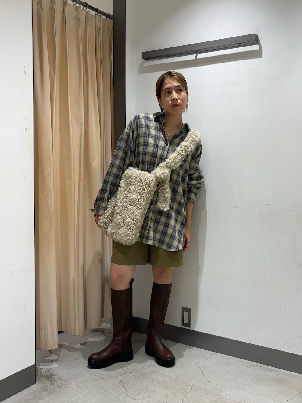 BIGチェックシャツはオーバーサイズなのでミニワンピース風にショートパンツと合わせました🤍
