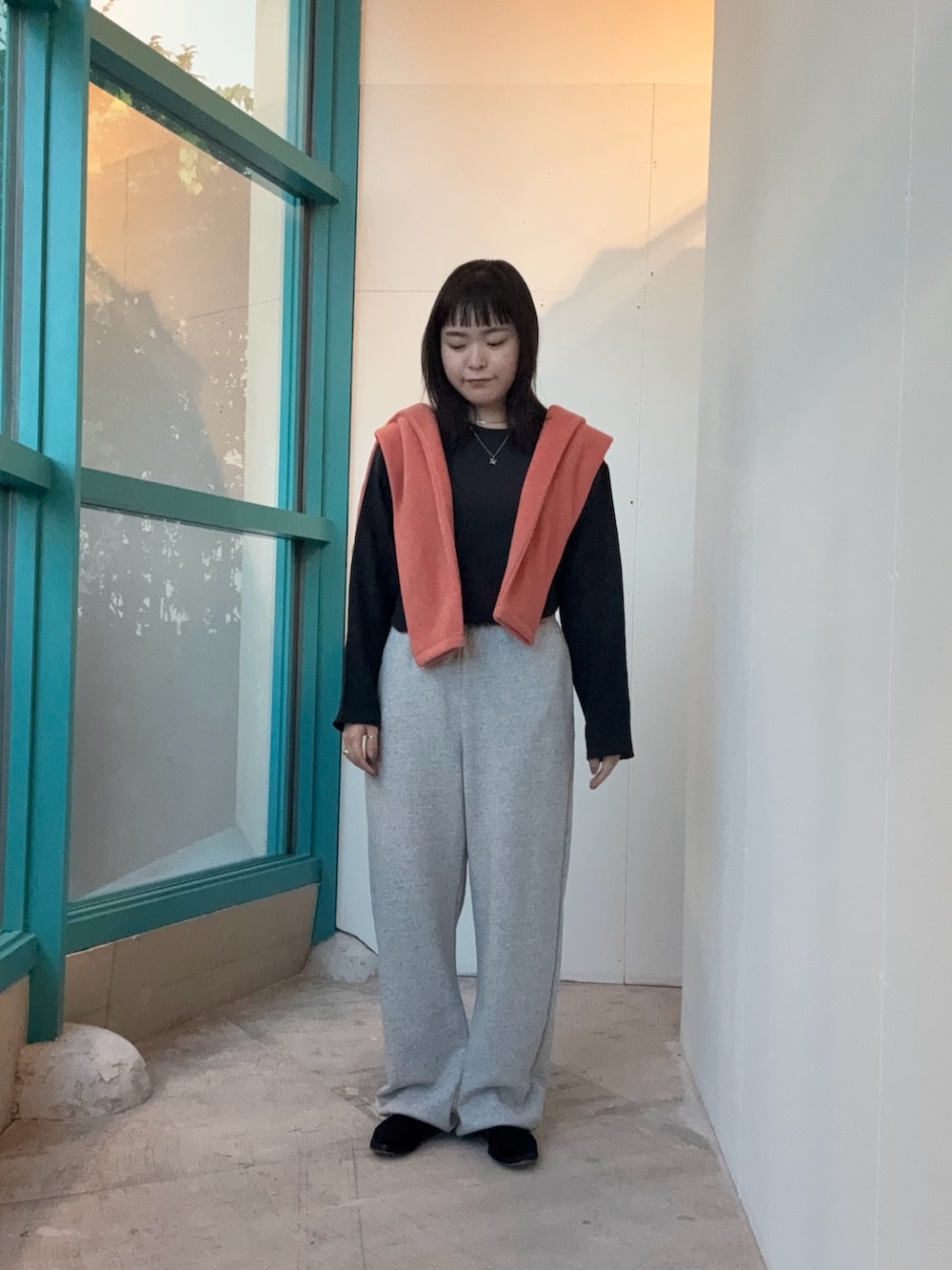 commpostのスウェットは裾が絞れるデザイン。158cmの私は、絞るとちょうどよく着れました◎