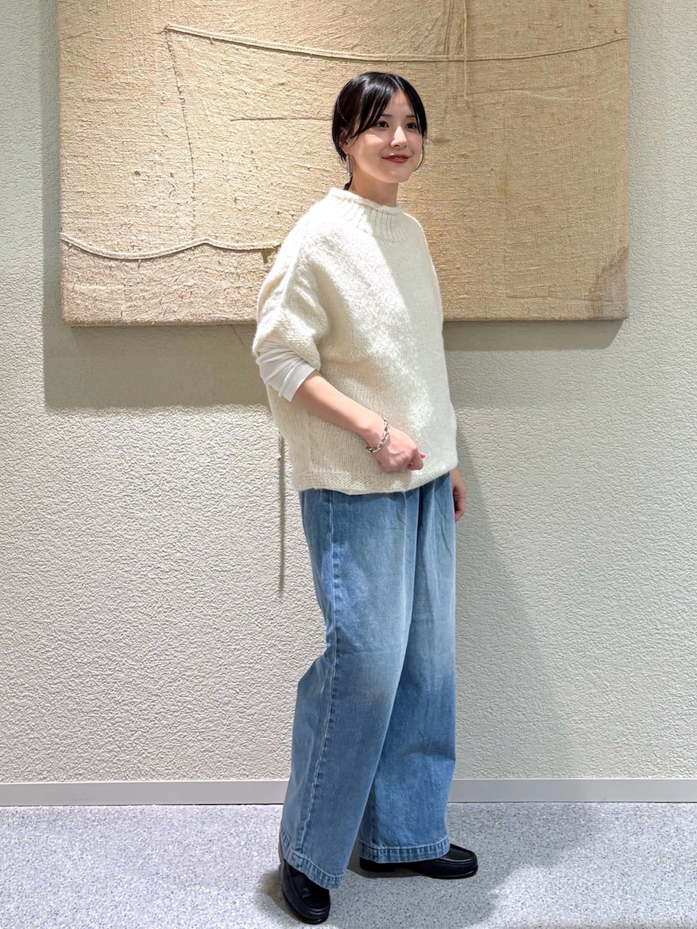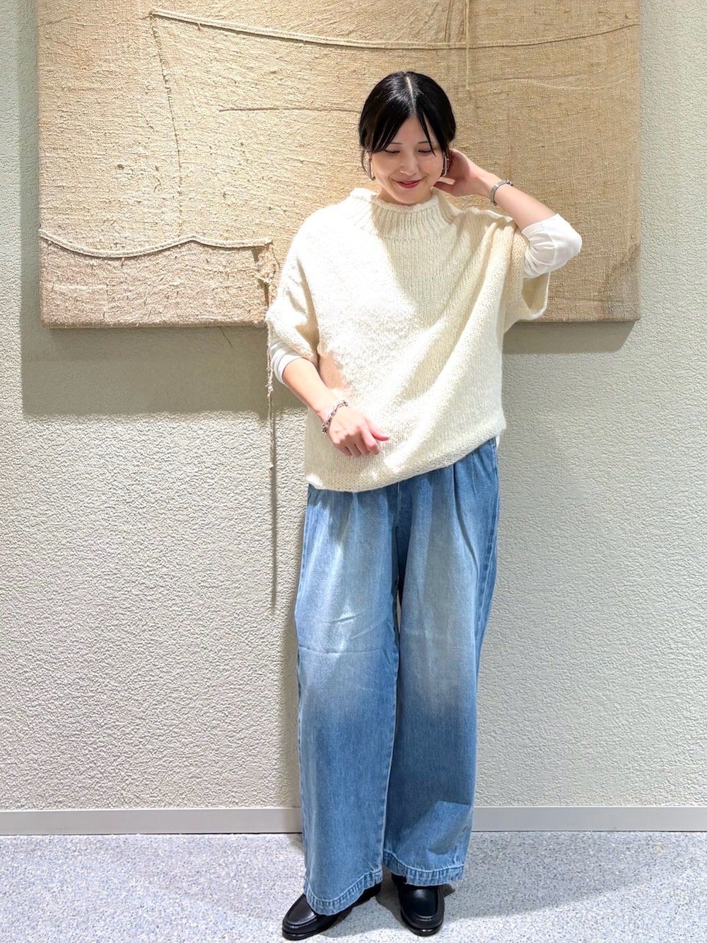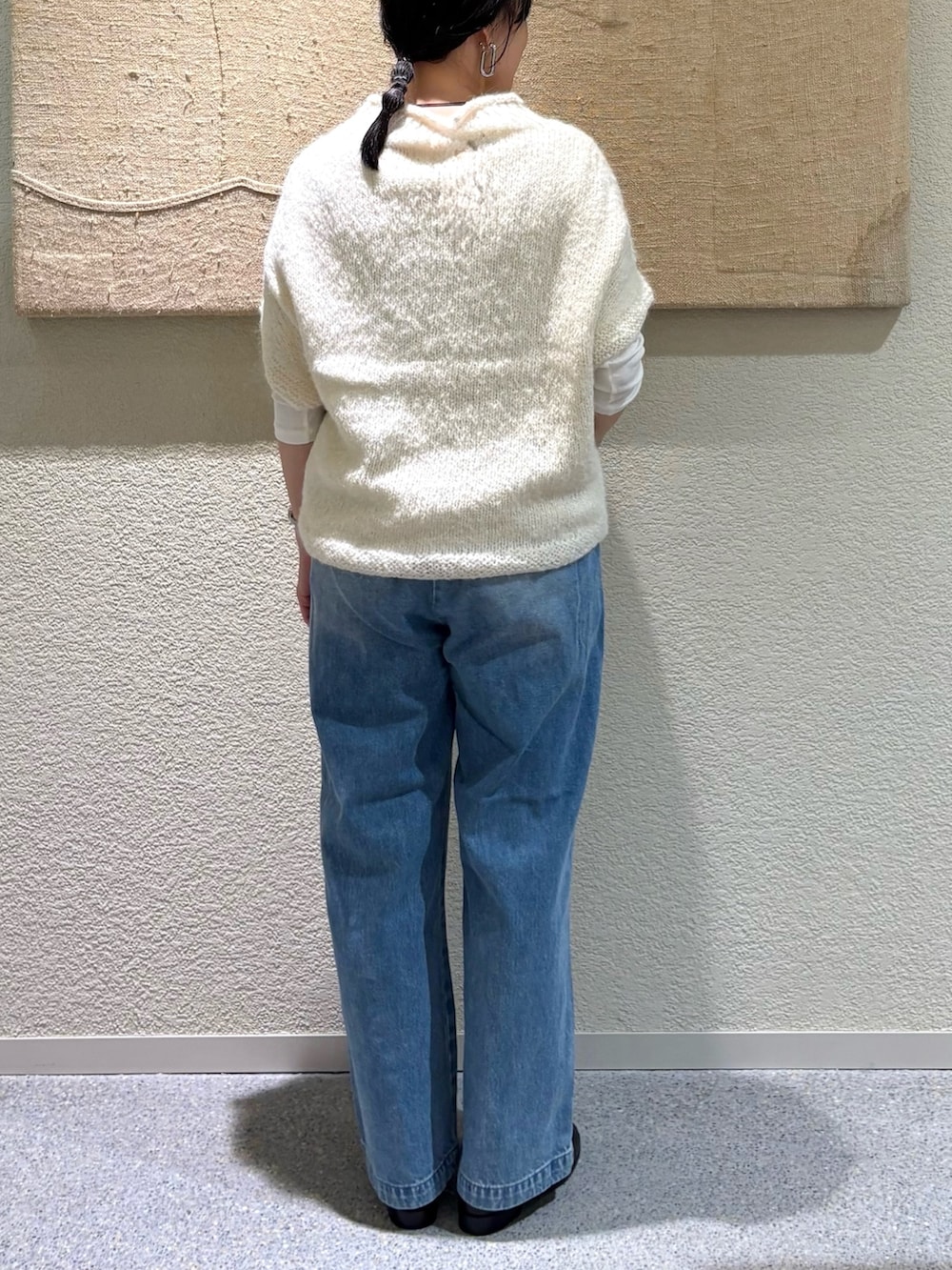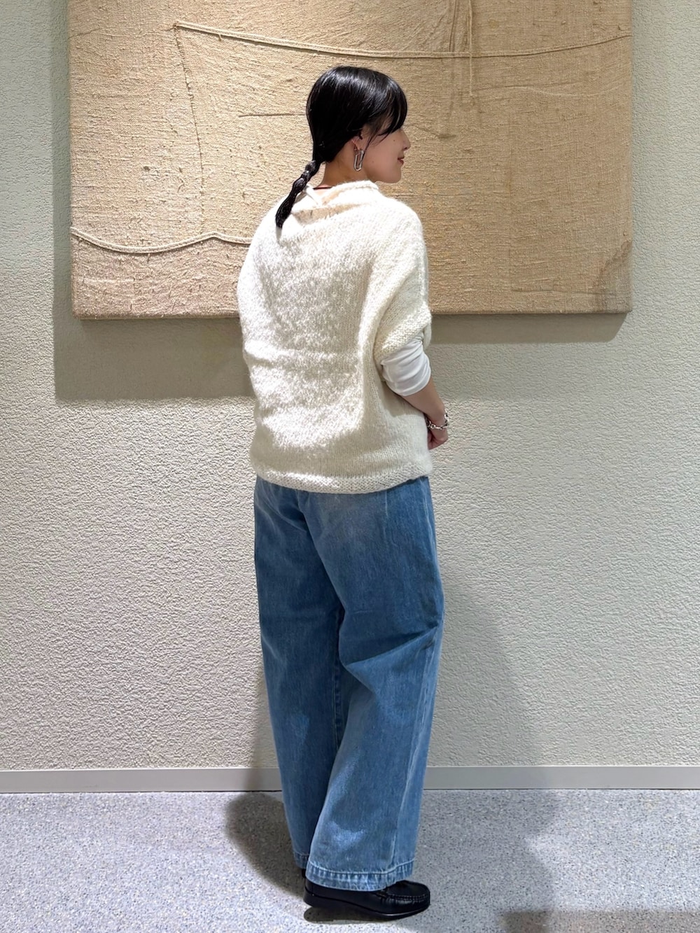 ・デニムを合わせてカジュアルさを加え、抜け感のある大人のリラックススタイルに。