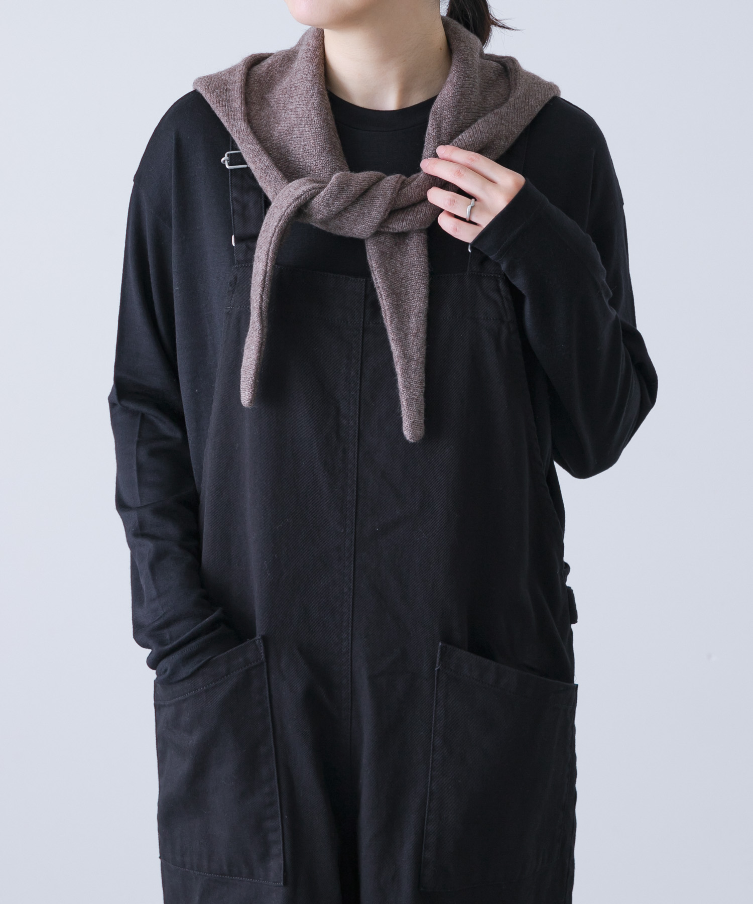 やわらかく暖かなヤクウールを使用したフードマフラー。首元を包み込みながらフードとしても使える2WAY仕様で、防寒性とデザイン性を兼ね備えています。モカのやさしい色合いがコーディネートにぬくもりをプラス。季節の変わり目の羽織としても◎