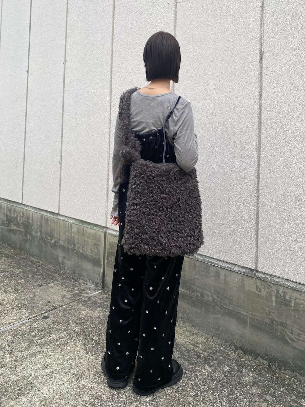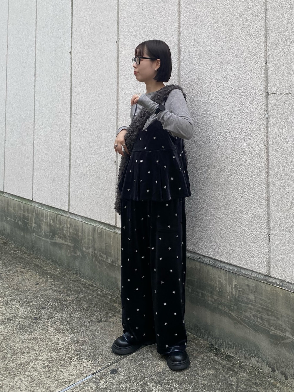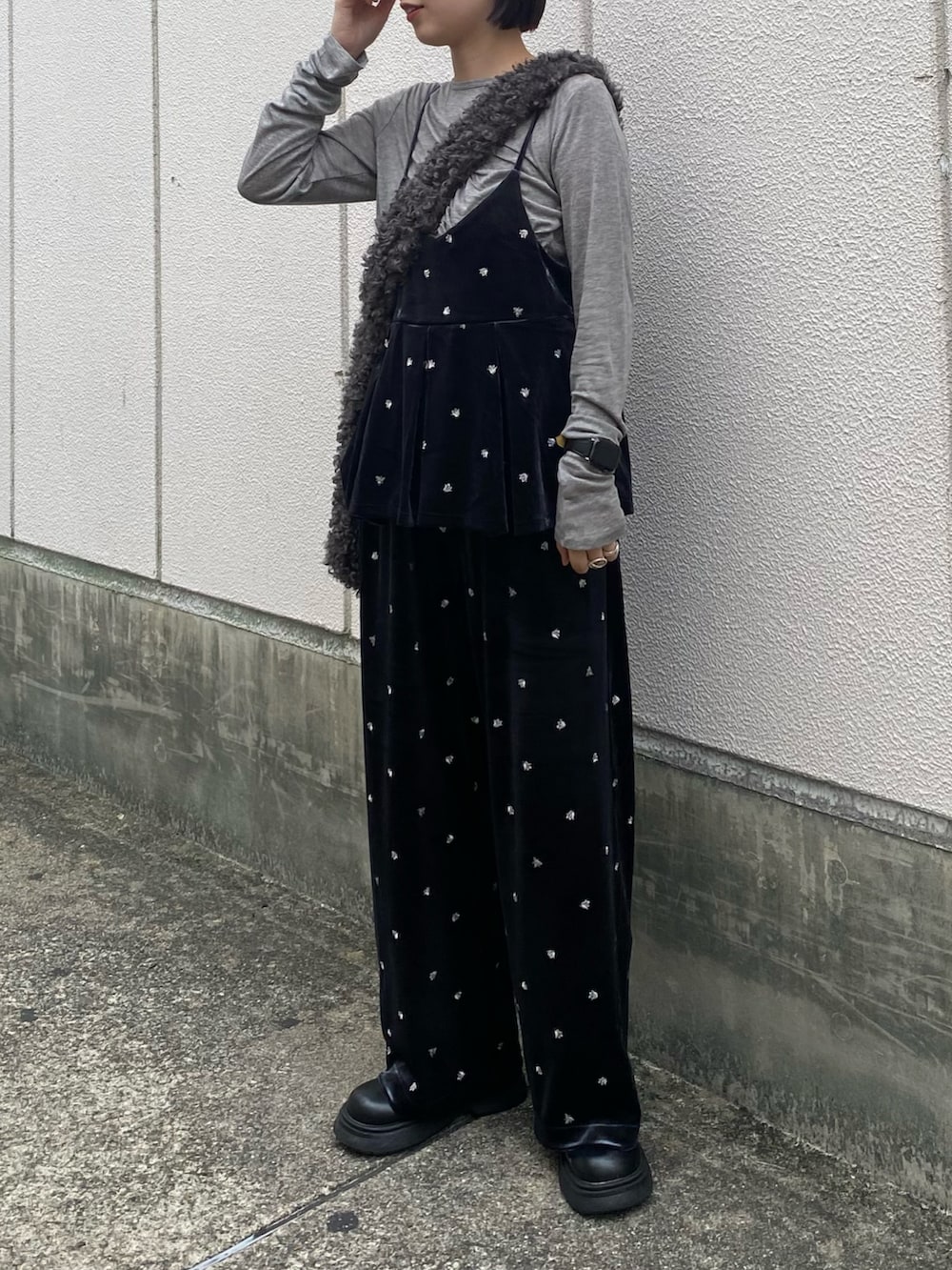 パンツは丈感ゆるっと長めなので、150センチ前半の方は少しウエスト部分折っていただくと、綺麗に履いていただけるかと思います!