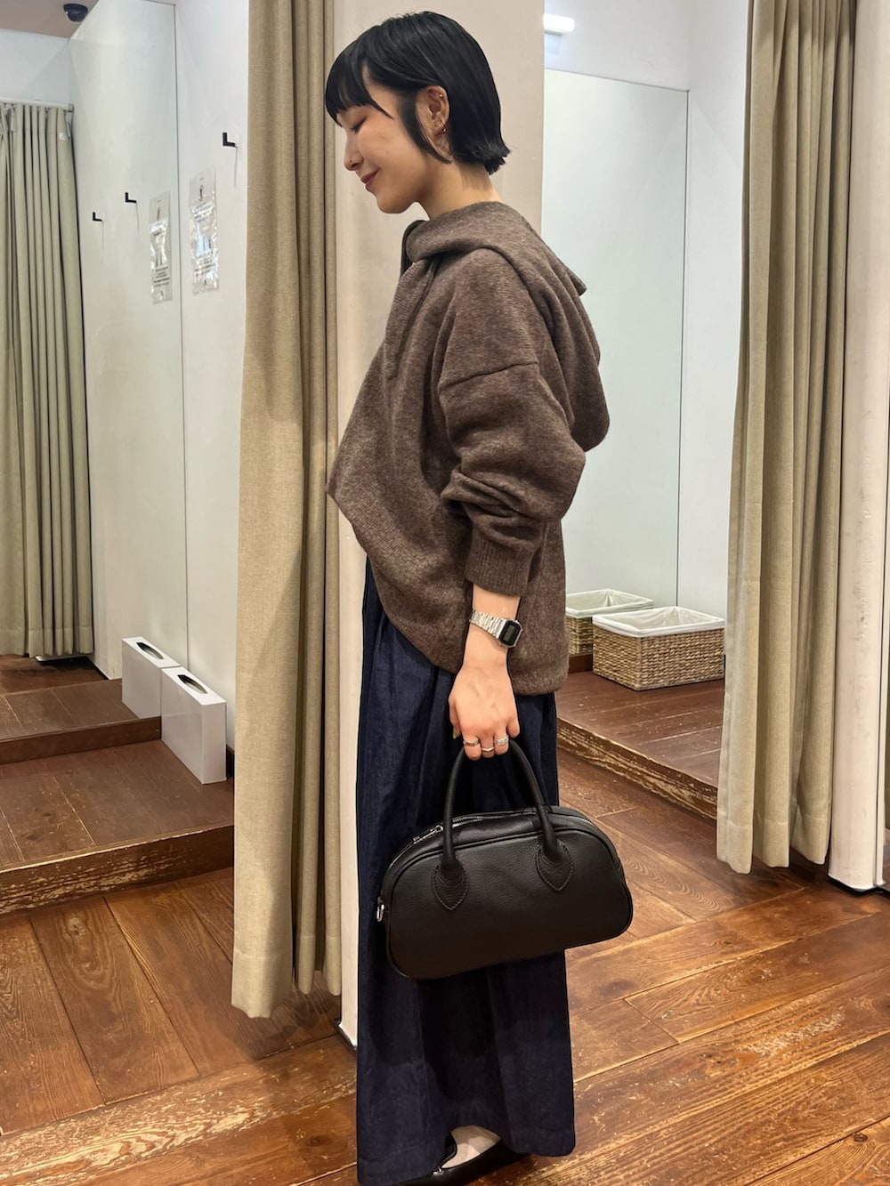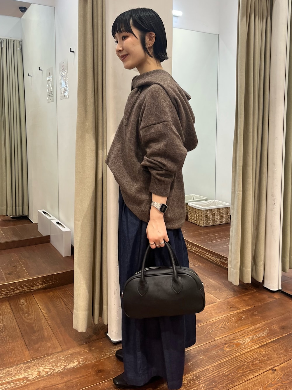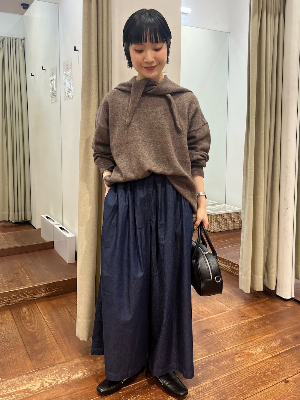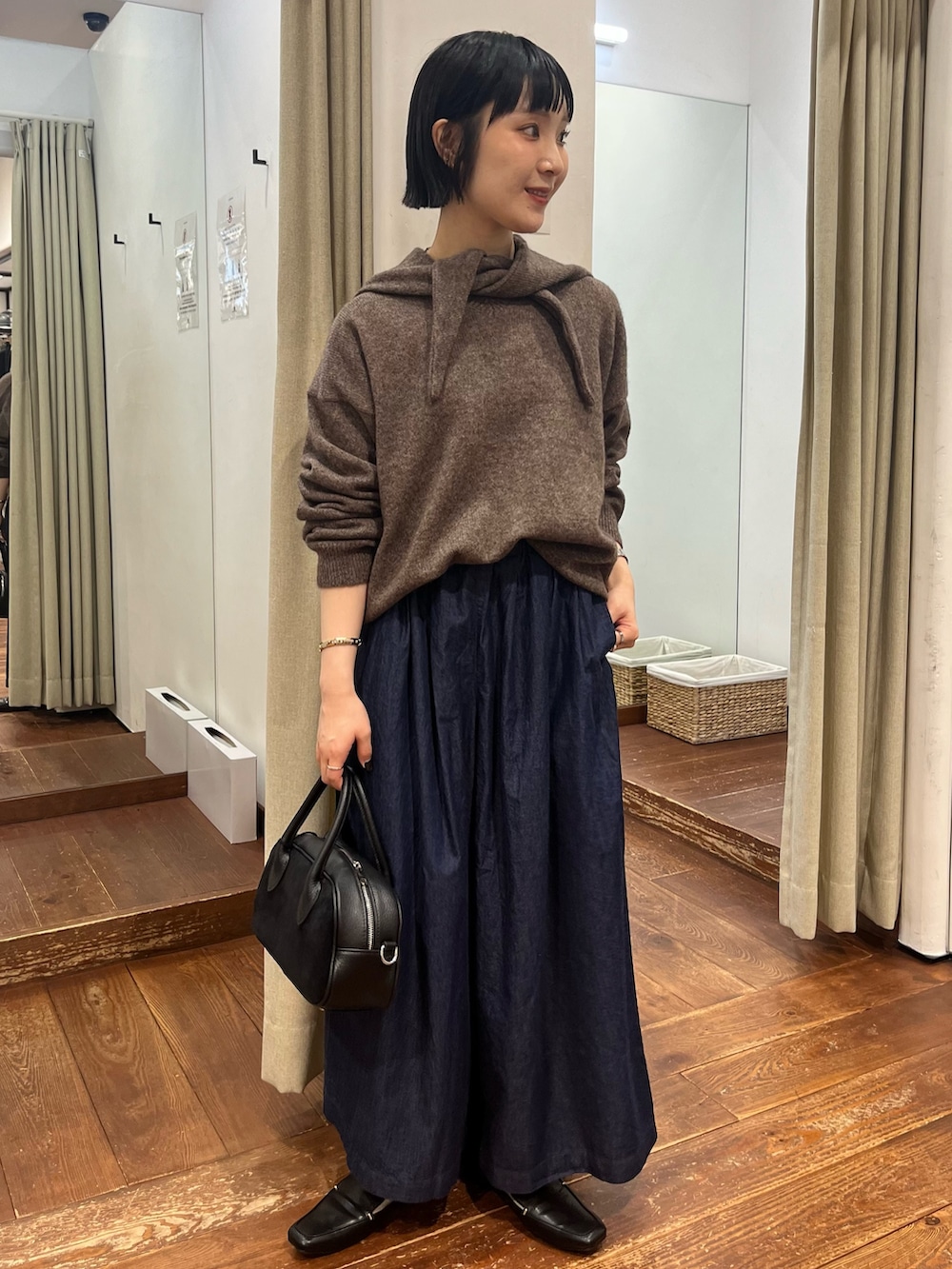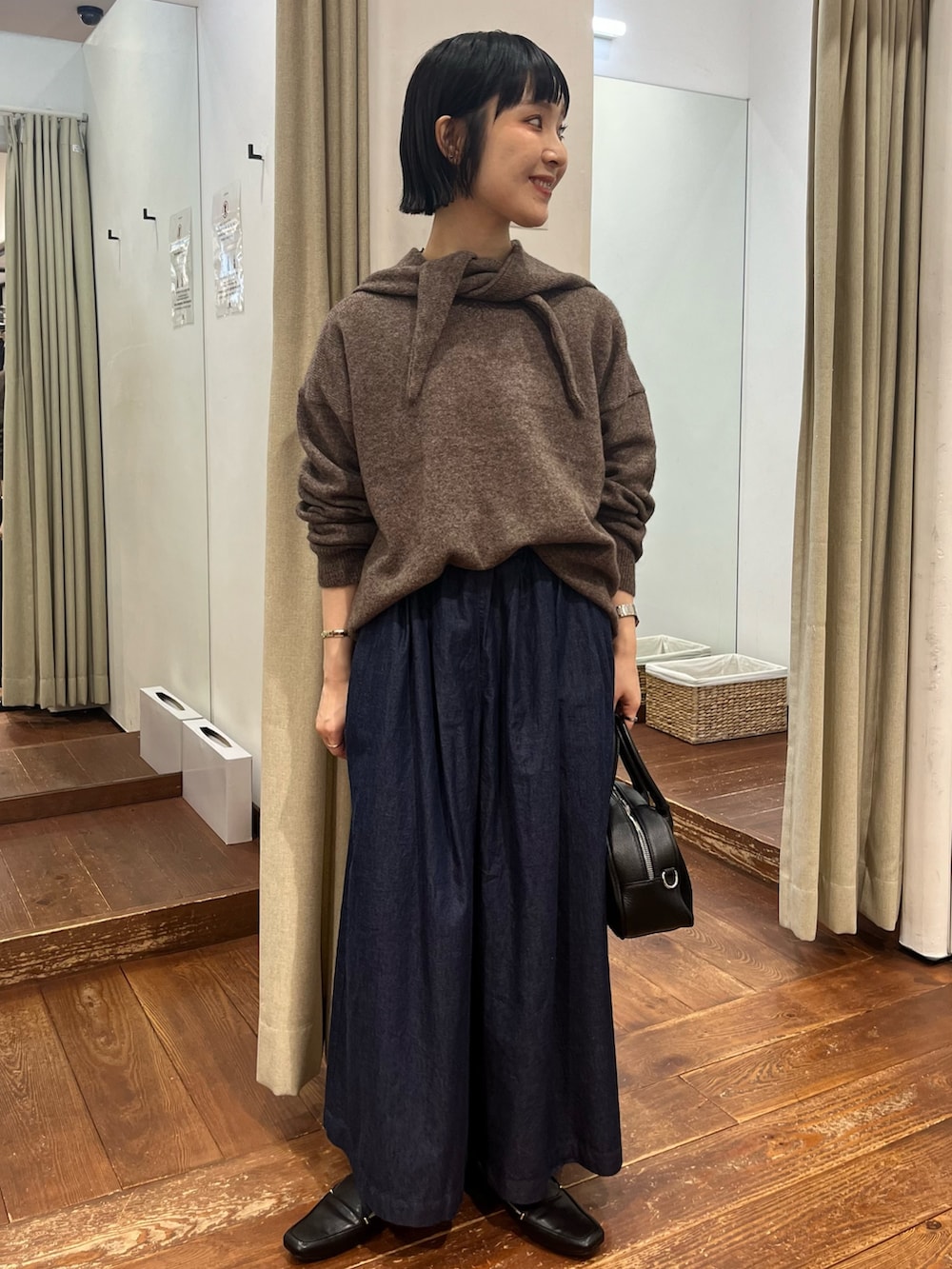 着回しもしやすい、シンプルなVネックニットです。(同じ色展開でフードマフラーも🧣🤎)