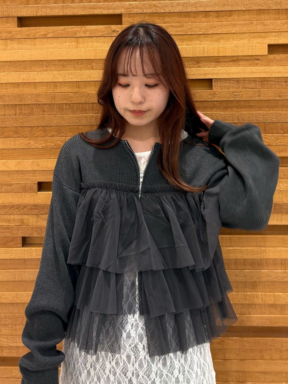 SENSE OF PLACEダブルジップフリルニットカーデ