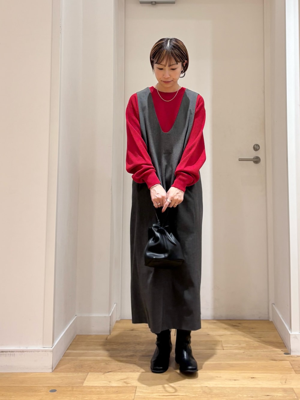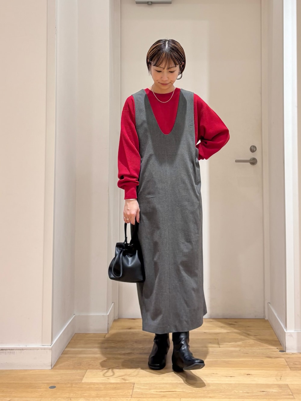 ジャンパースカートは、程よくゆとりのあるサイズ感でニット合わせも楽ちんでした◎