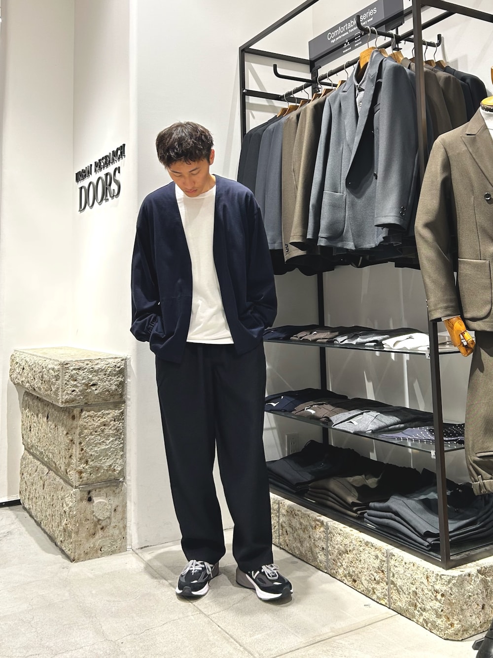 たっぷりとしたワイド感に加え、膝・裾のダーツで動きのあるシルエットに。